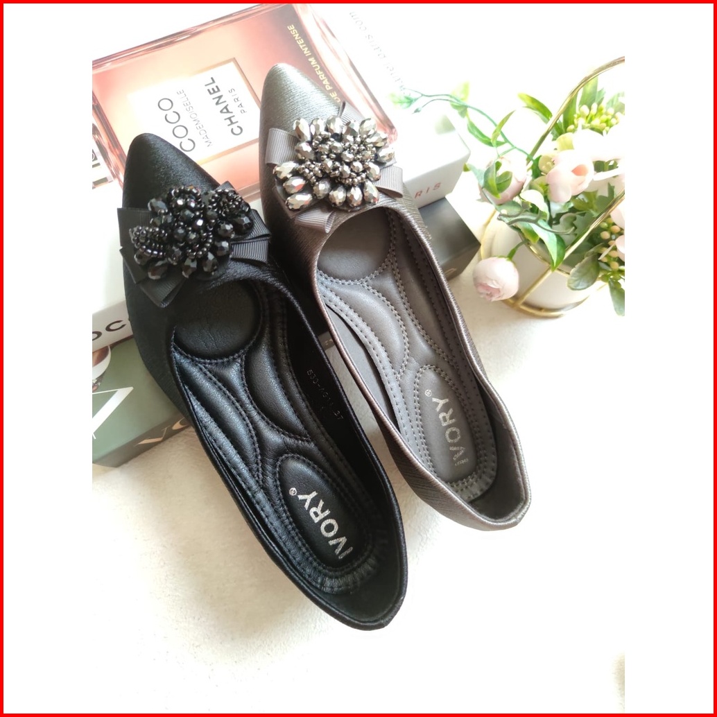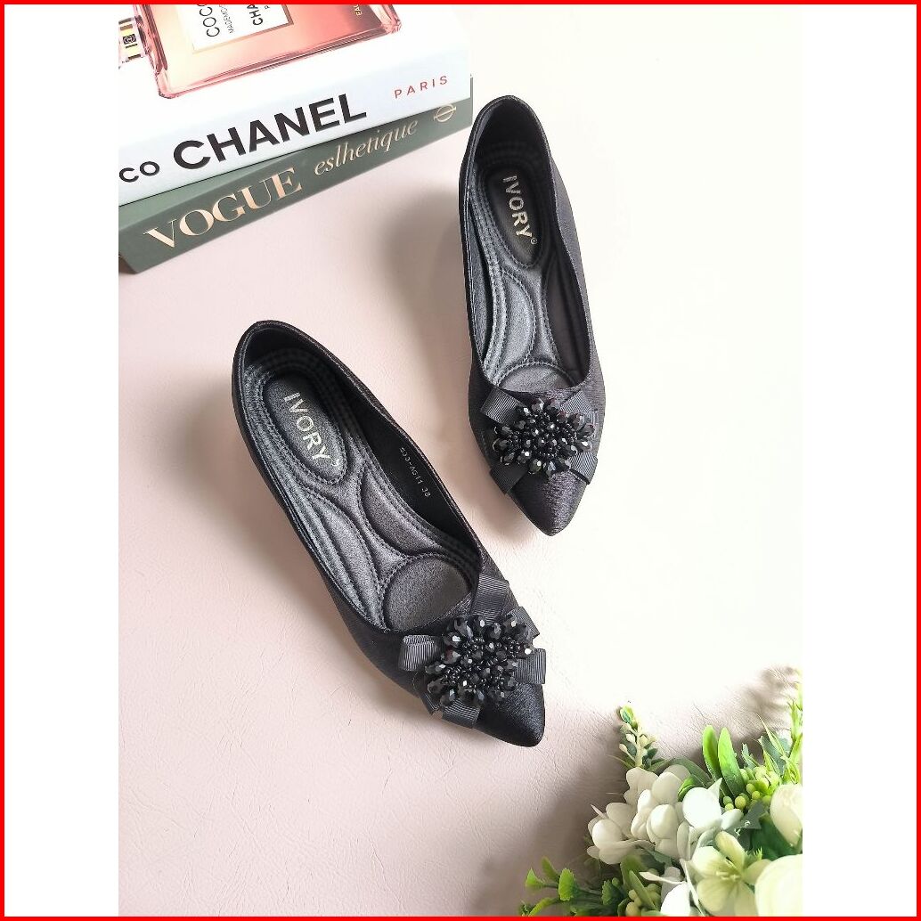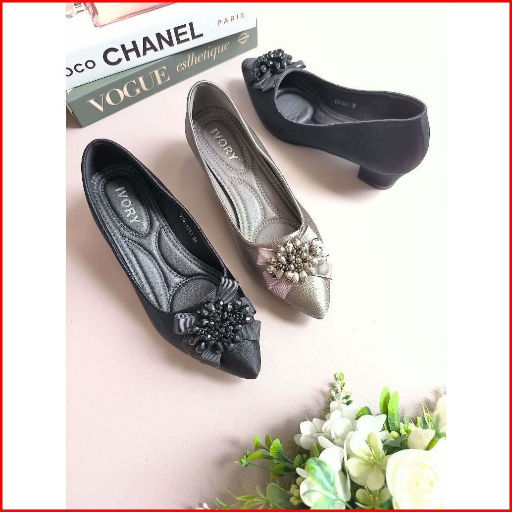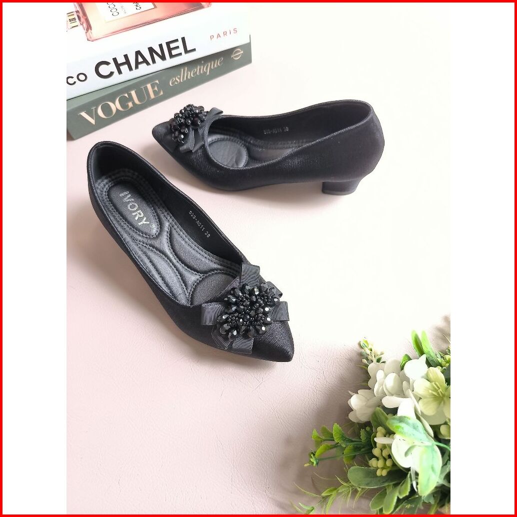 Ivory Sepatu Heels Wanita Kerja Hak Tahu Ag11 Hitam