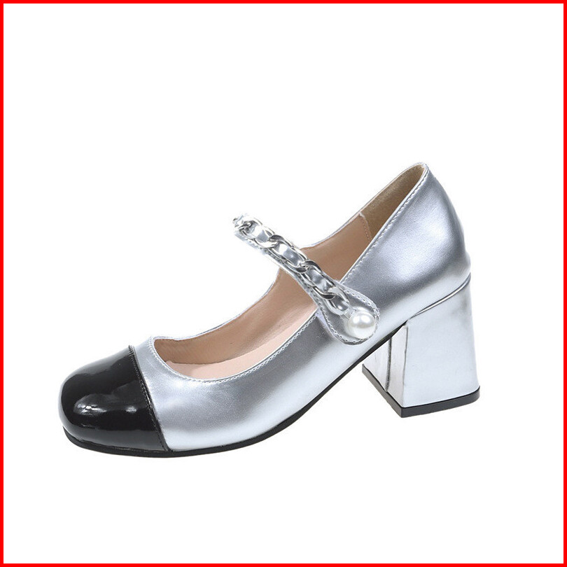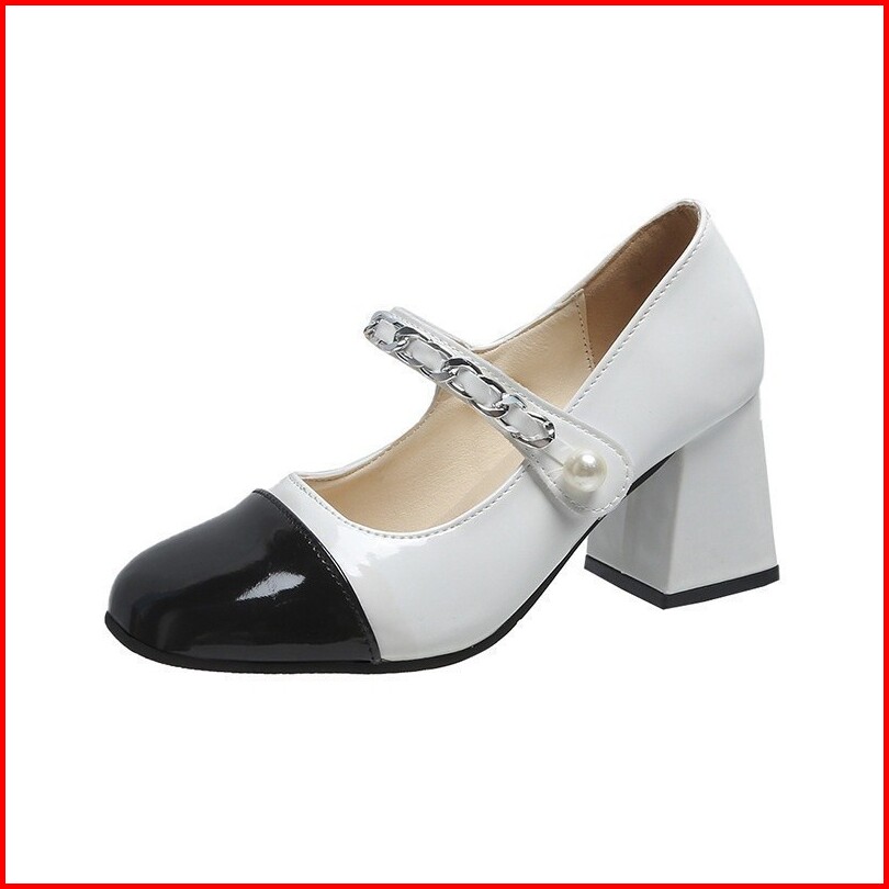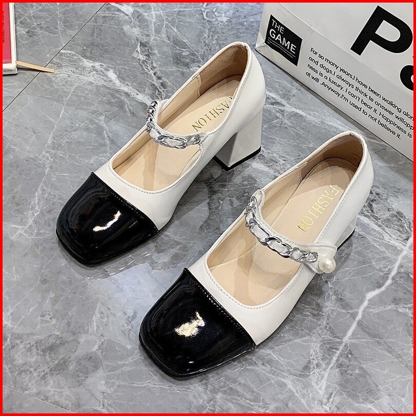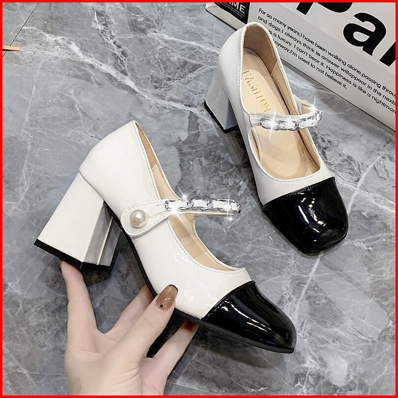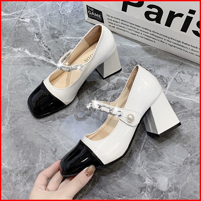J Y Joy Young Kualitas Premium 1566 Sepatu Wanita Heels Hak C07 Black White Mary Jane Heel 7 Cm Tahu Elegan Cantik Keren