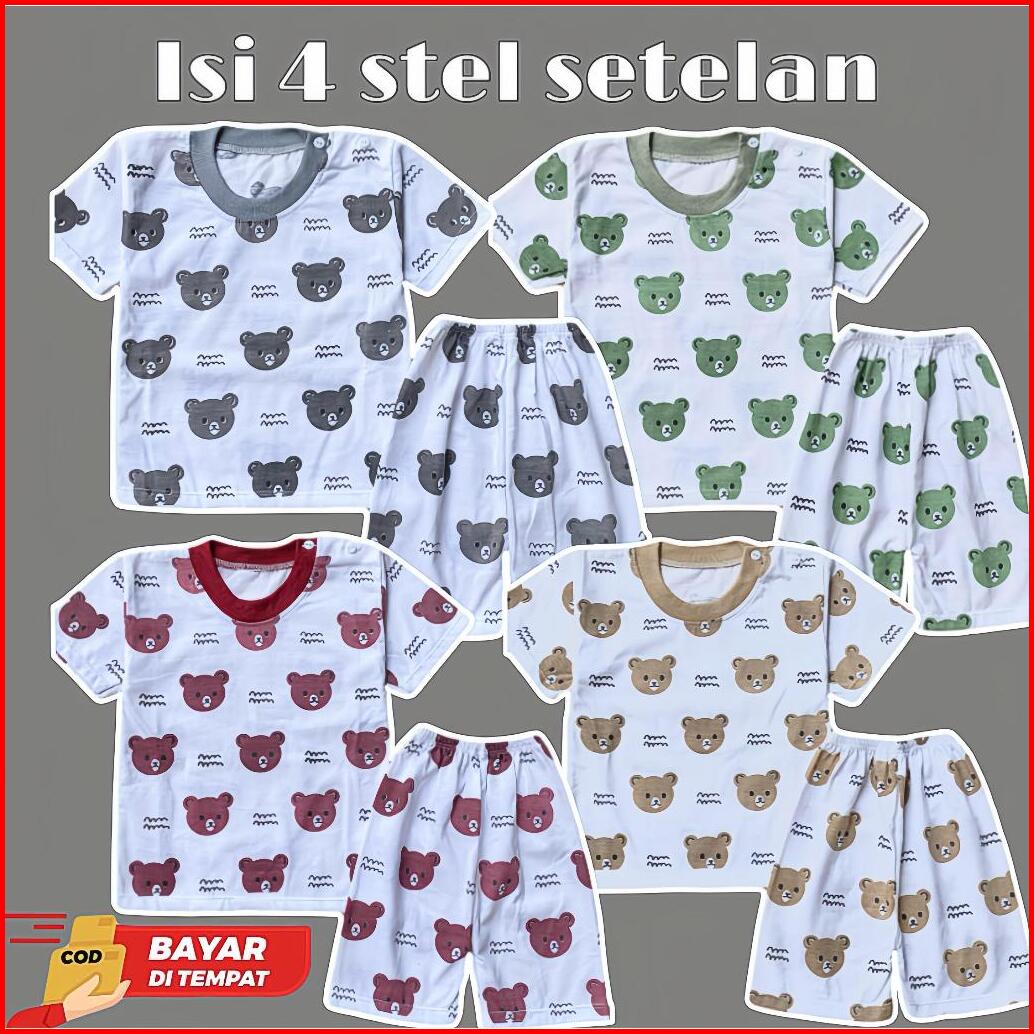 Isi 4 Stel Setelan Bayi Kaos Oblong Bayi Lengan Pendek Celana Pendek Bayi 3-12 Bulan - Ayakan Baby