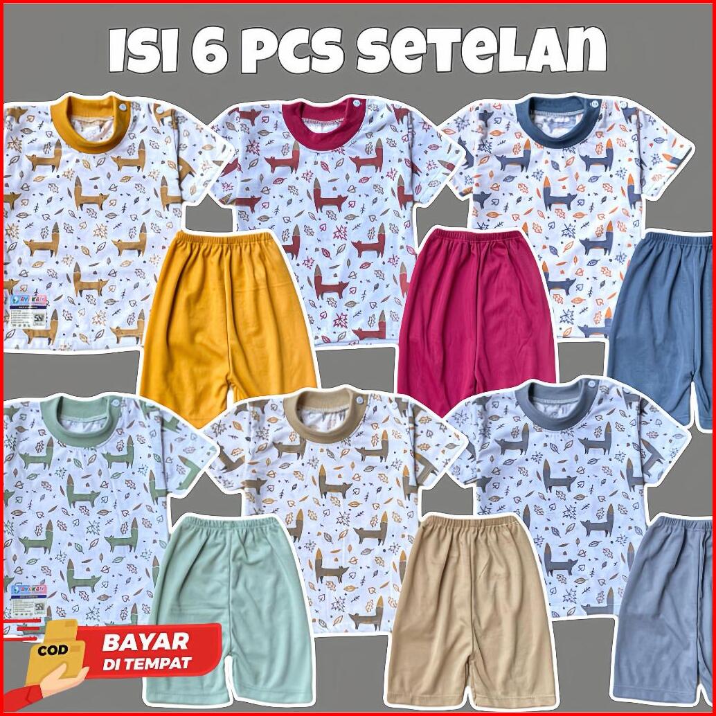 Isi 6 Stel Setelan Bayi Kaos Oblong Setelan Bayi Lengan Pendek Celana Pendek 3-12 Bulan - Ayakan Baby