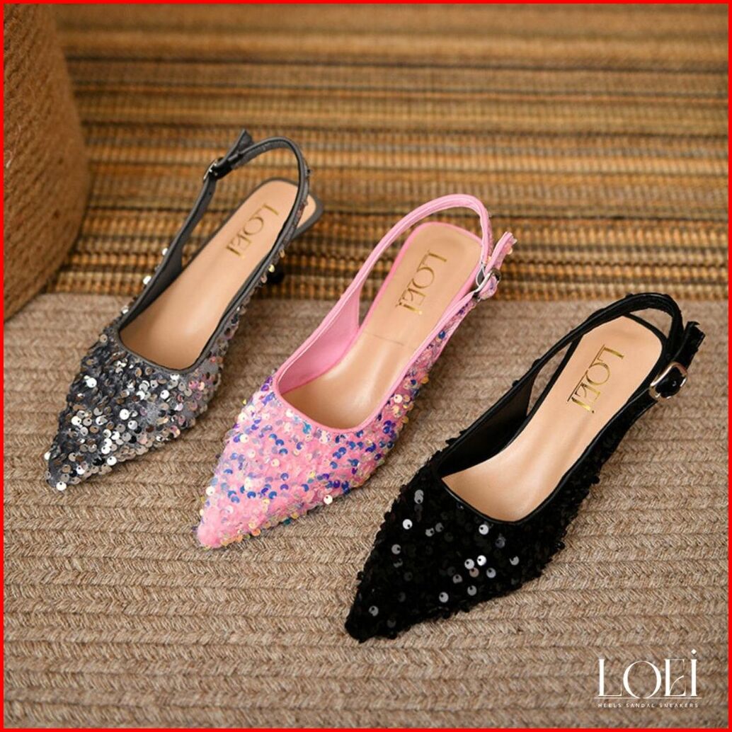 Loei Jolie Heels Sequin Pesta Wanita Mewah Sepatu Hak 3 Cm 2616