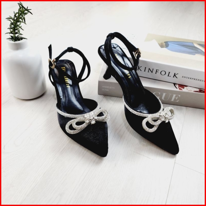 Ophelia Heels 5cm Sendal Satin Wanita Se Ndal Tali Permata