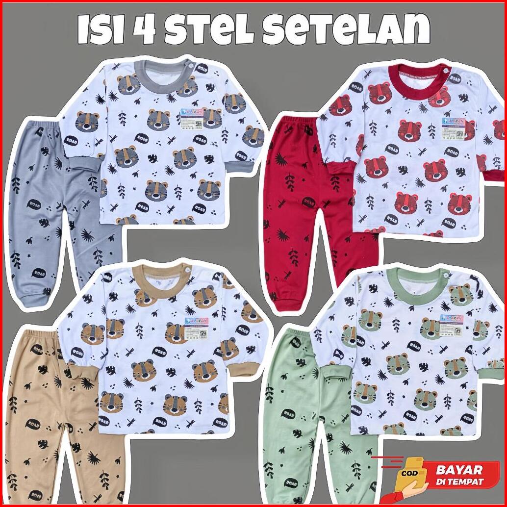 Isi 4 Stel Setelan Bayi Baru Lahir Setelan Kaos Oblong Lengan Panjang Celana Panjang Bayi 3-12 Bulan - Ayakan Baby