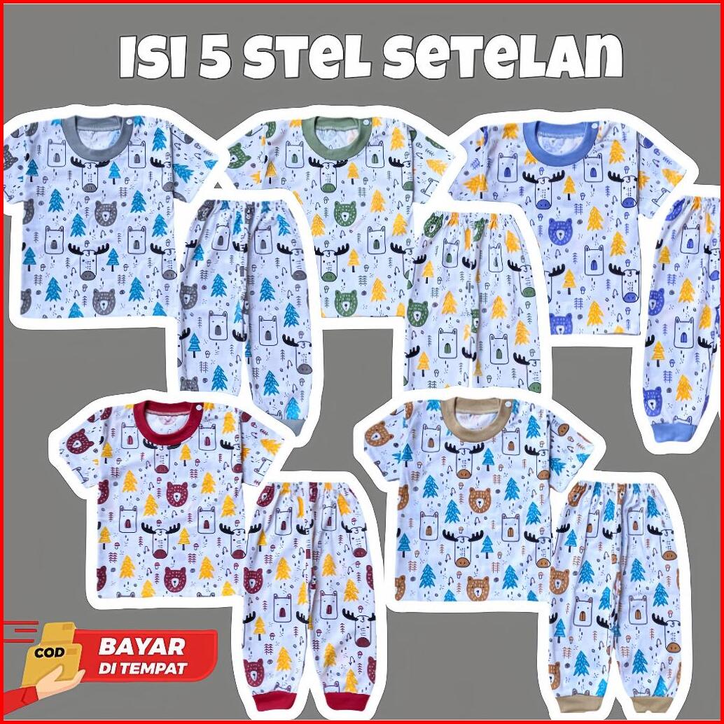 Isi 5 Stel Setelan Bayi Baru Lahir Kaos Oblong Bayi Lengan Pendek Celana Panjang 3-12 Bulan - Ayakan Baby