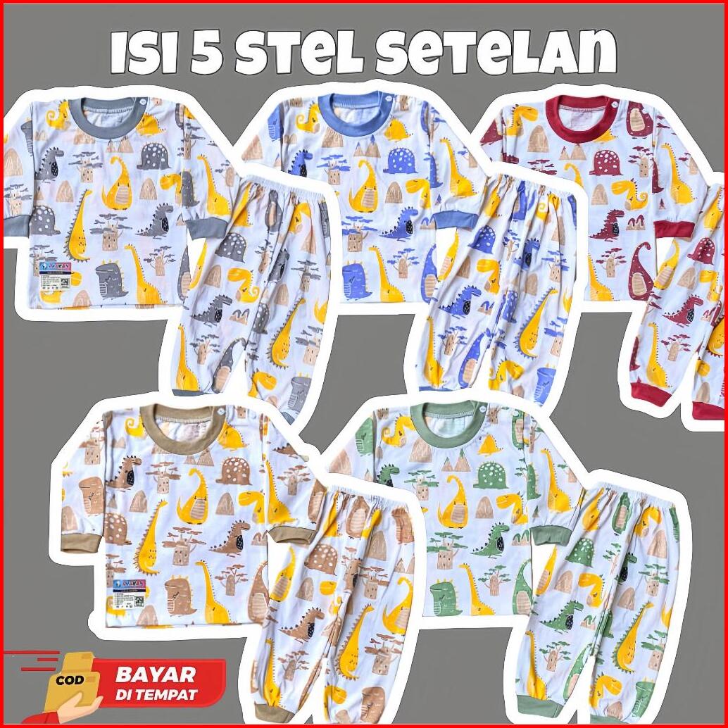 Isi 5 Stel Setelan Bayi Setelan Kaos Oblong Lengan Panjang Celana Panjang Bayi 3-12 Bulan - Ayakan Baby