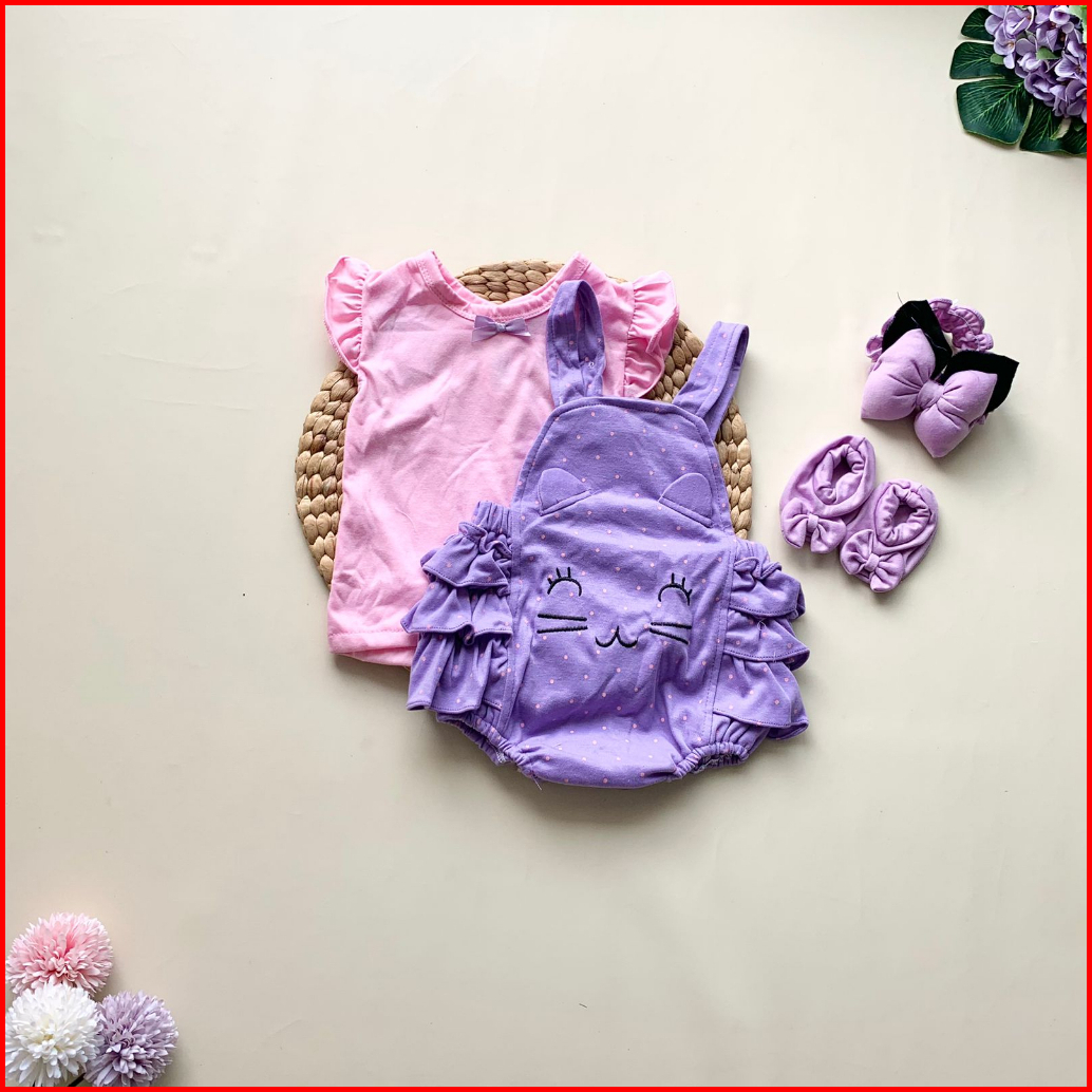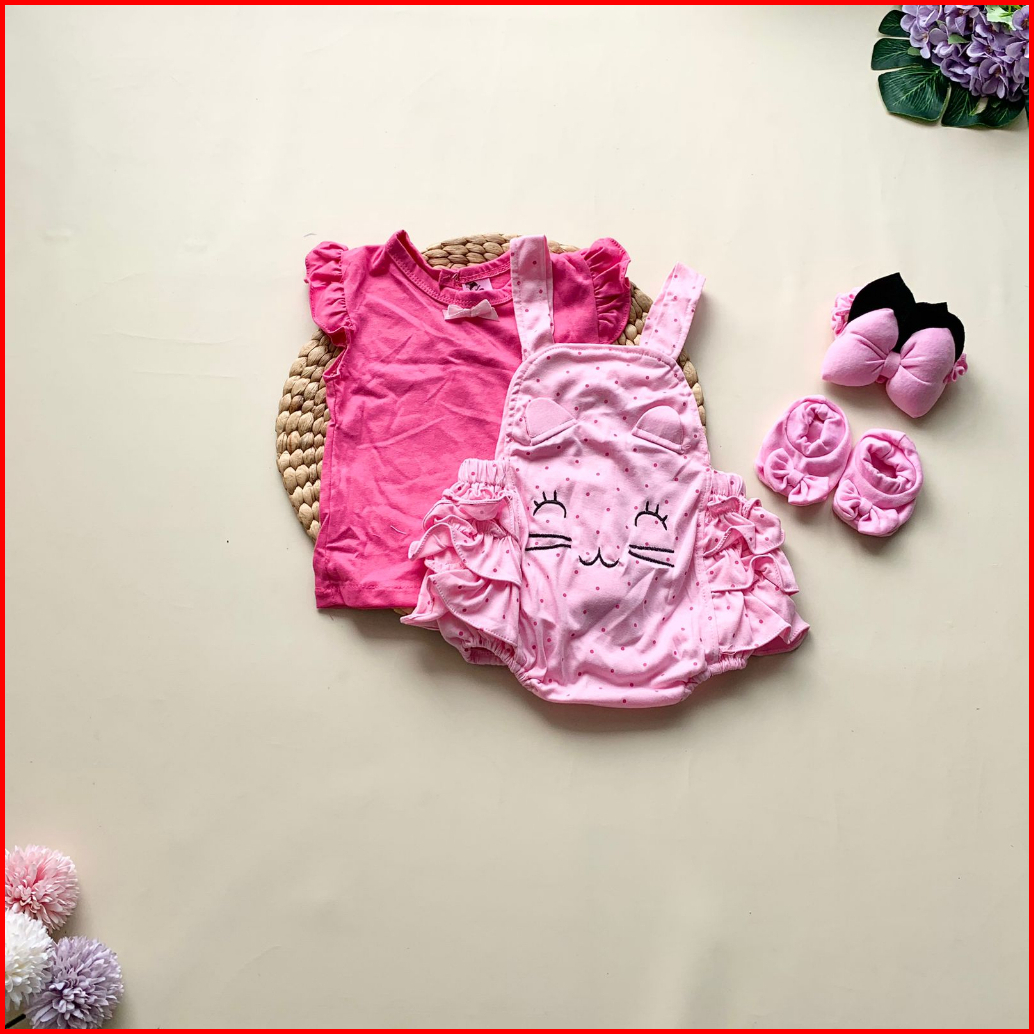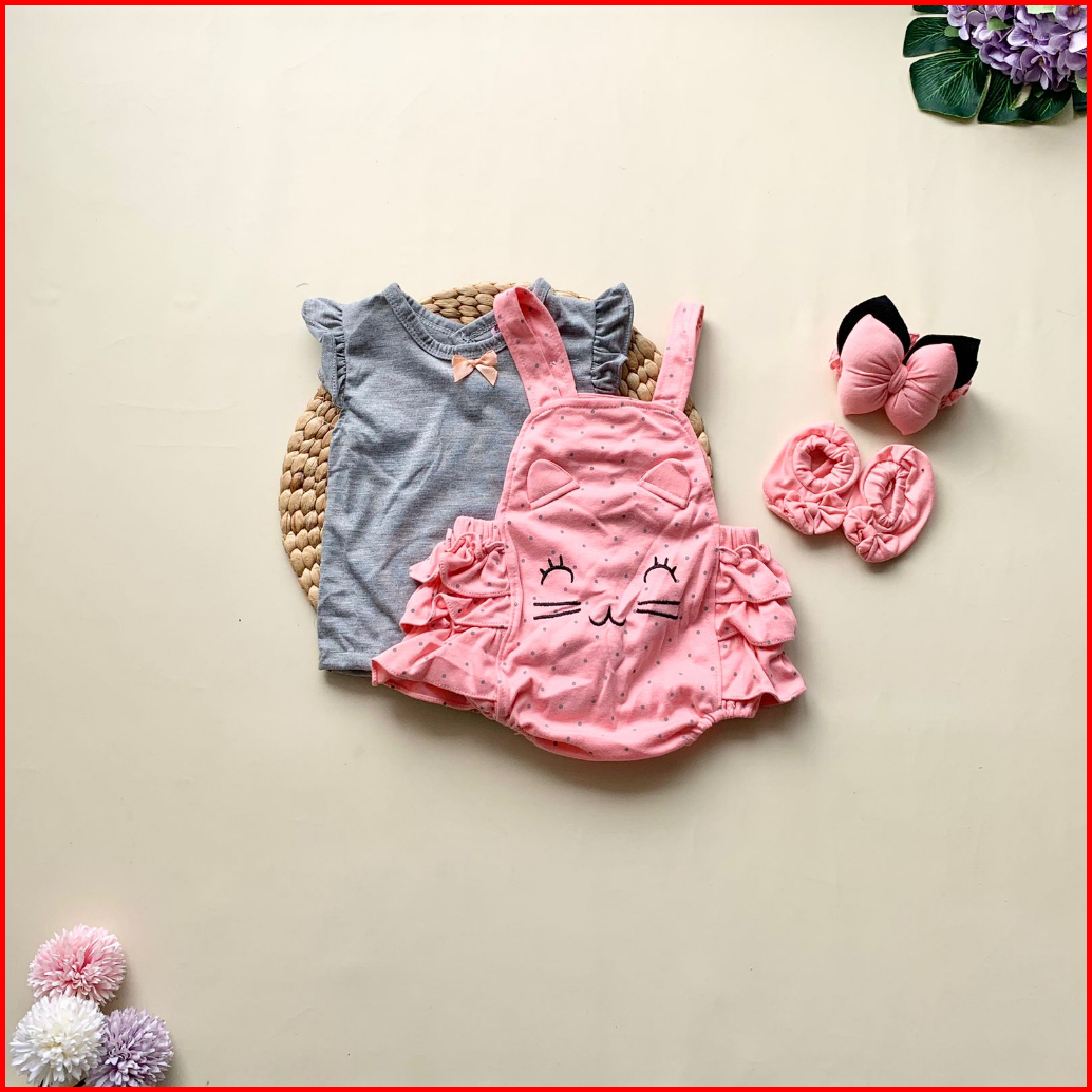 Quebeecloth Baju Setelan Kaos Overall Kodok Bandana Sepatu Cantik Fashion Anak Bayi Cewek Perempuan Baby Girl Murah -meo
