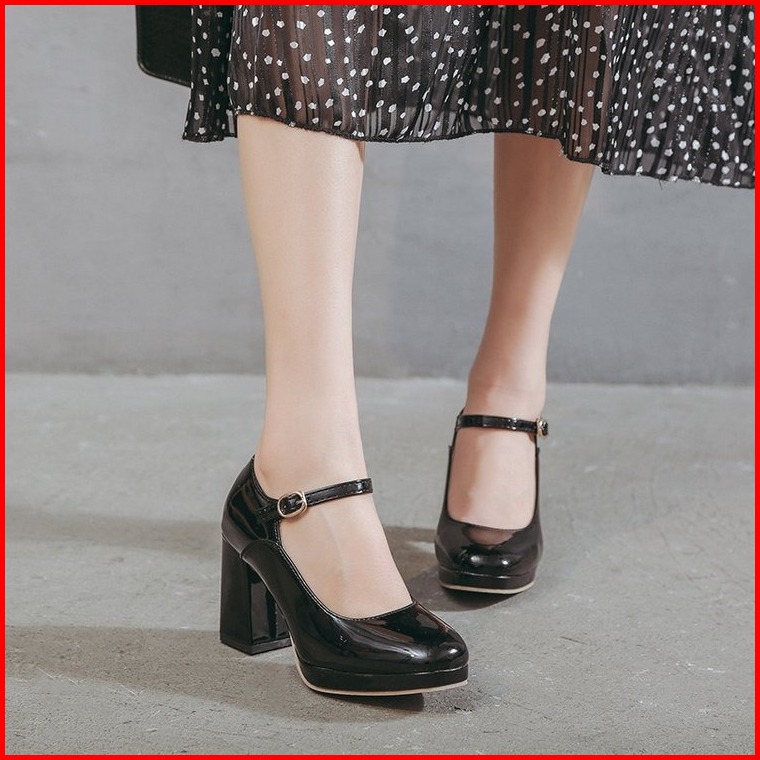 Findal Sepatu Heels Pumps Wanita Platform Mary Jane Hak Tinggi Kasual Ki-094