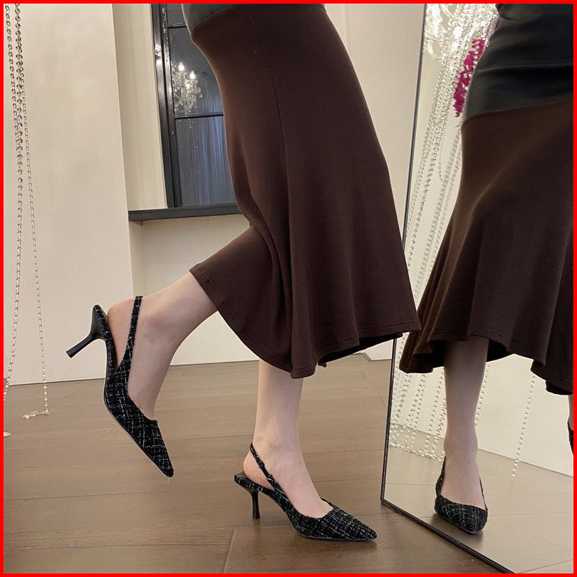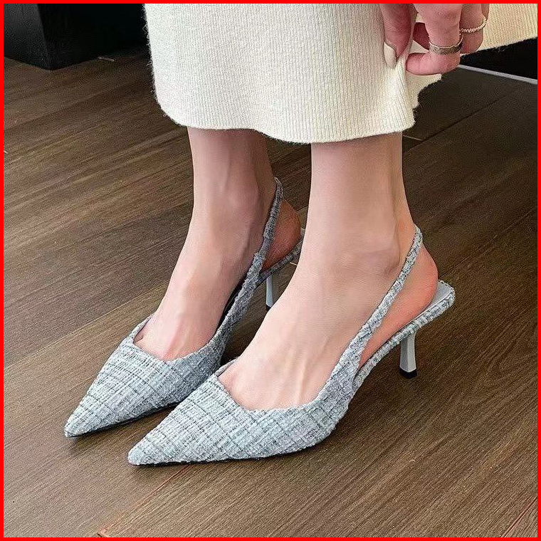 8283 Tweed High Heels Viral Wanita Import With Box