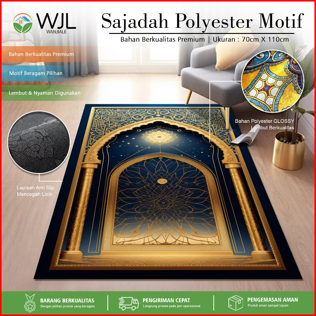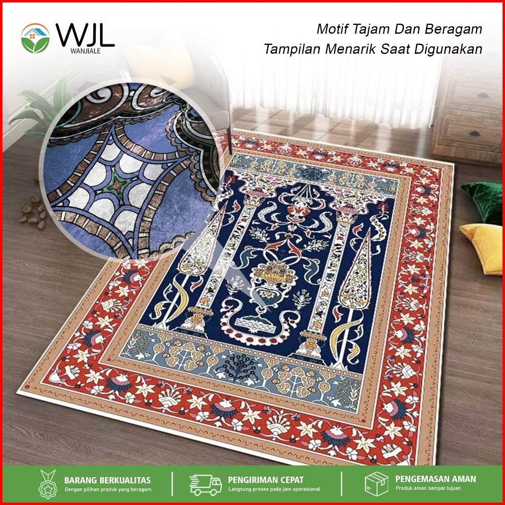 Wanjiale Sajadah Tebal Premium Kubah Motif Anti Slip Turki Ukuran Standar Besar Nyaman Lembut