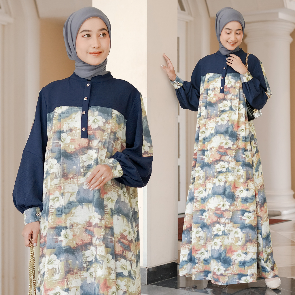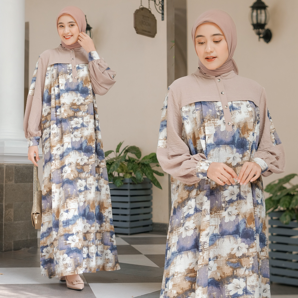 ( RAMADHAN SALE ) Ventedaily - Naisila Maxy Gamis Muslim Crinkle Airflow Premium Motif Bunga Crinkle Polos