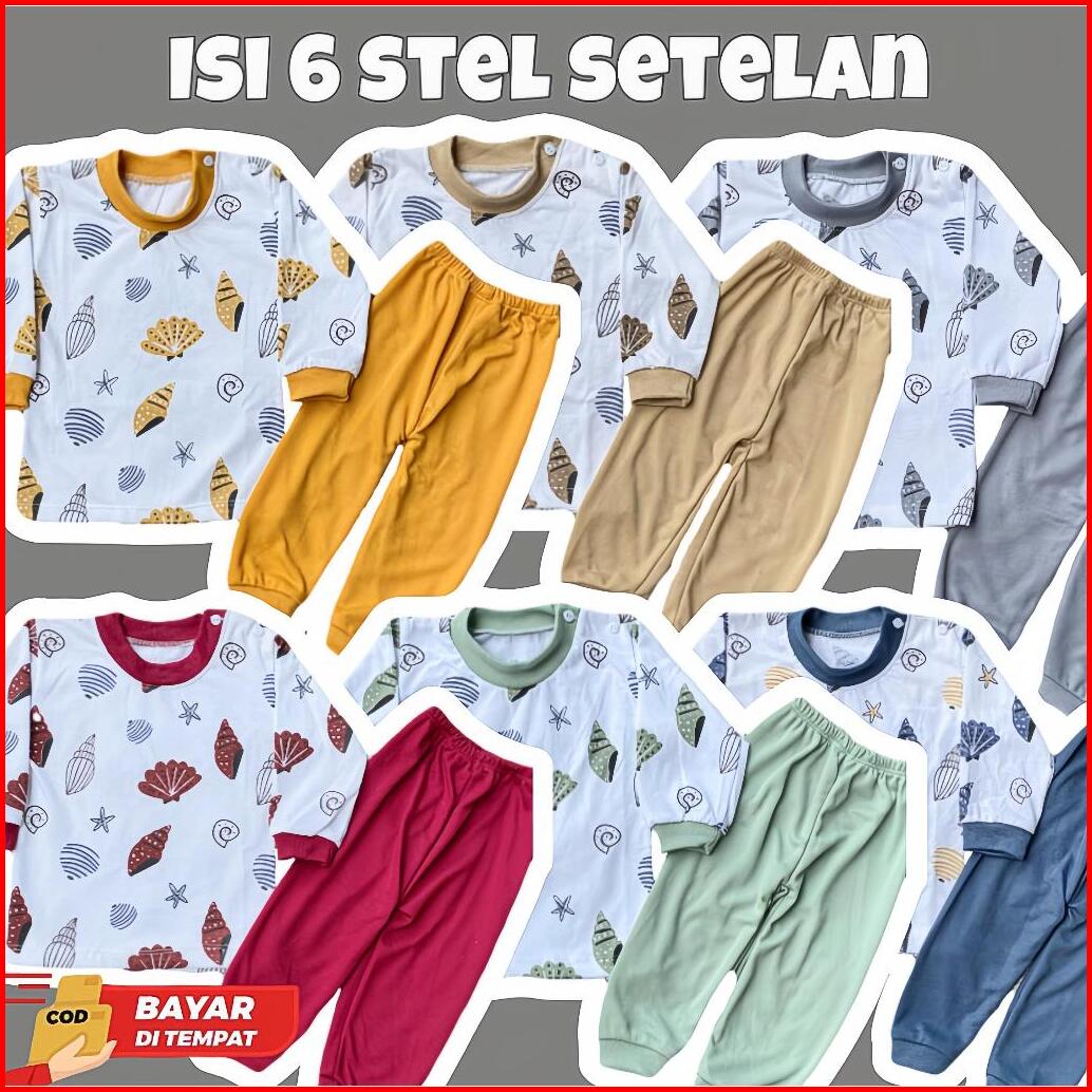 Isi 6 Stel Setelan Bayi Baru Lahir Setelan Oblong Bayi Lengan Panjang Celana Panjang Bayi 3-12 Bulan - Ayakan Baby