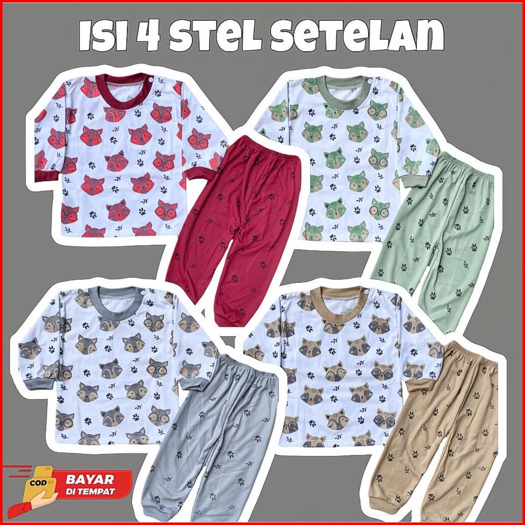 Isi 4 Stel Setelan Bayi Baru Lahir Setelan Kaos Lengan Panjang Celana Panjang 3-12 Bulan - Ayakan Baby