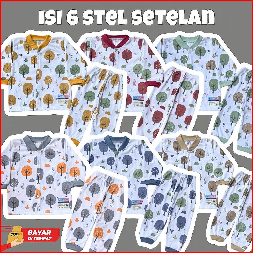 Isi 6 Stel Setelan Bayi Setelan Kaos Oblong Bayi Lengan Panjang Celana Panjang 3-12 Bulan - Ayakan Baby