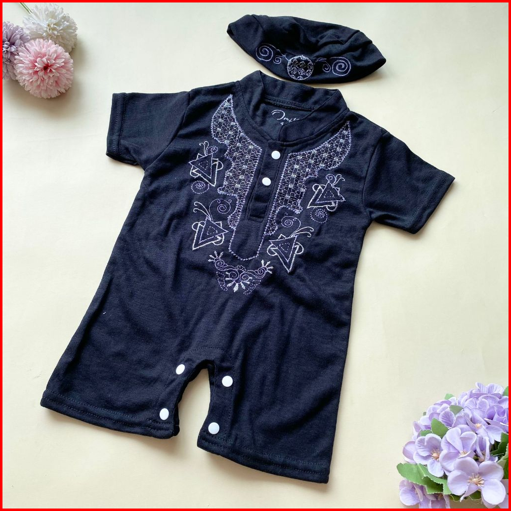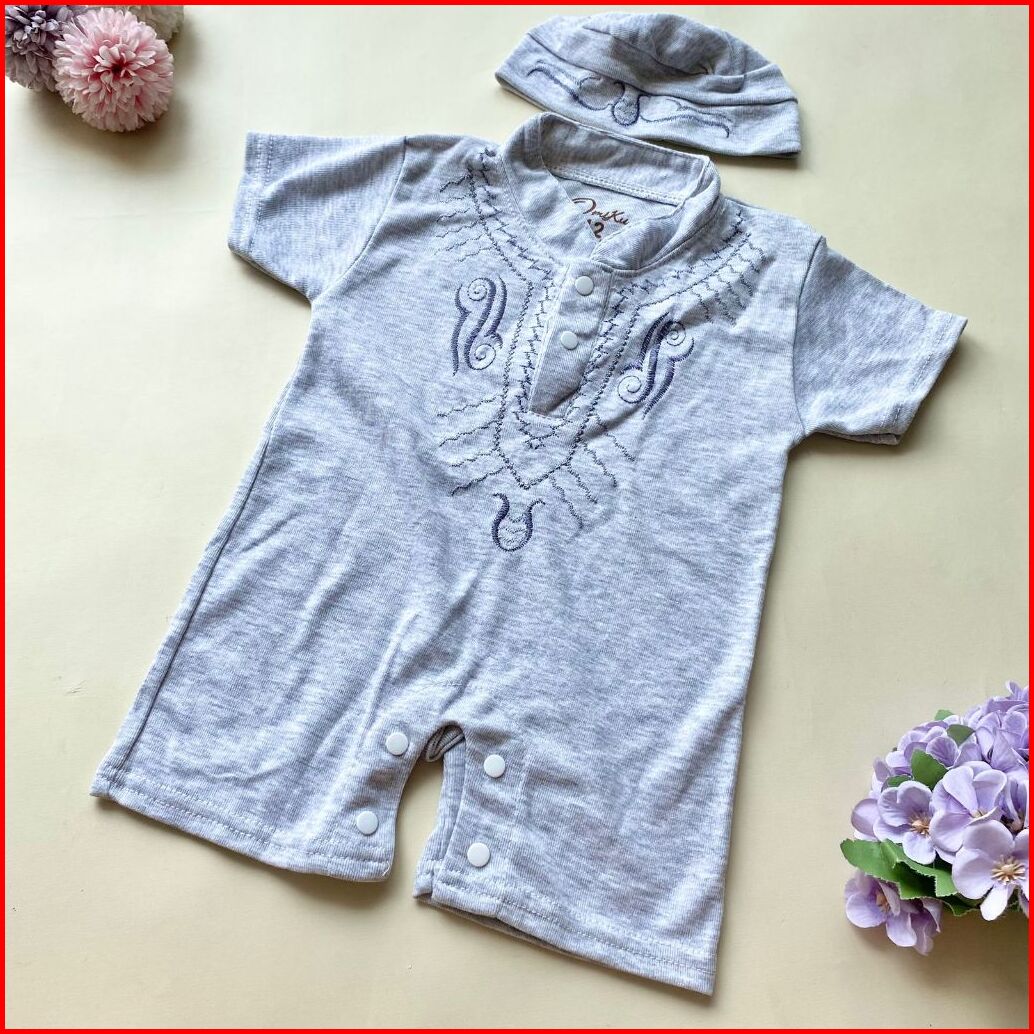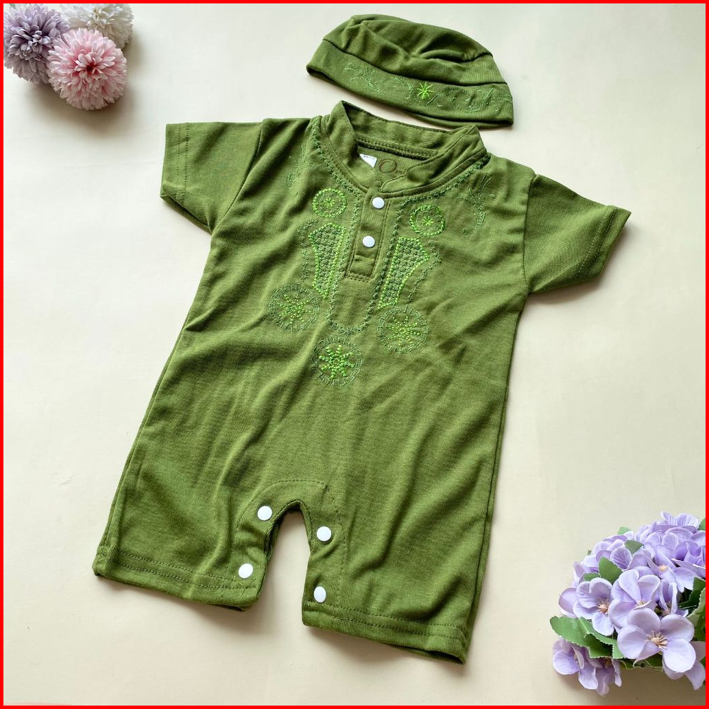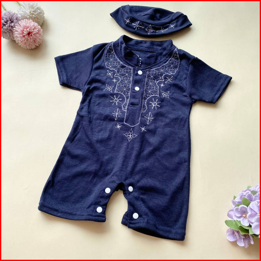 Quebeecloth-baju Setelan Koko Romper Free Peci Fashion Anak Bayi Laki Laki Baby Boy Lucu Murah-azis