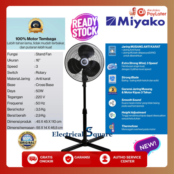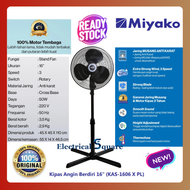 Kipas Angin Duduk Miyako Kipas Angin Ac Kipas Angin Berdiri Standing Fan 16 Inci KAS1606 X PL Original SNI Hitam