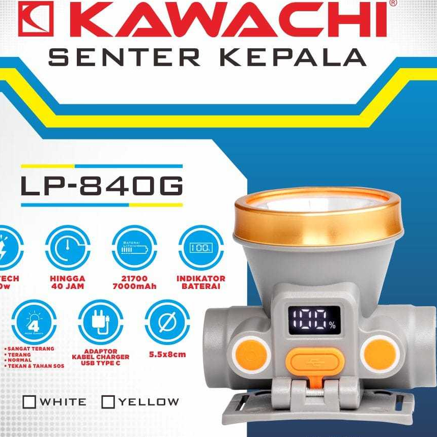 Senter Kepala Kawachi 40 Watt Hi Tech 40W Led Super Terang tahan 40 Jam dengan baterai 7.000mAH LP 840G TERDAPAT ADAPTOR