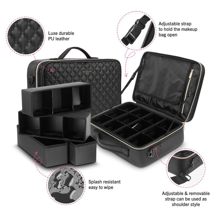 Tas Make Up Masami L 40x29x14cm LED TAHAN 5 JAM Koper Makeup Lampu Tas Makeup Kosmetik Tas MUA ORIGINAL