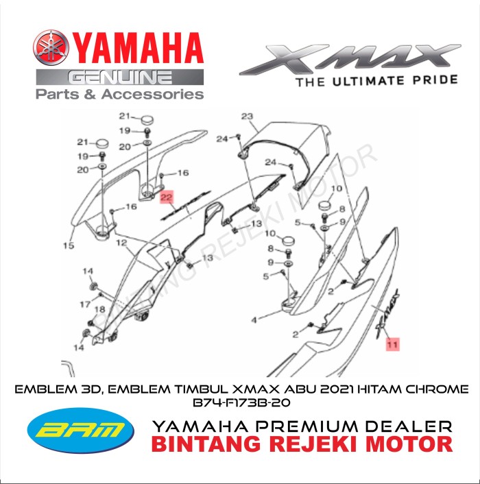 EMBLEM 3D, EMBLEM TIMBUL XMAX ABU 2021 HITAM CHROME B74-F173B-20