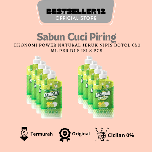 Sabun Cuci Piring Ekonomi Power Natural Jeruk Nipis Botol 650 ml Per dus isi 8 pcs