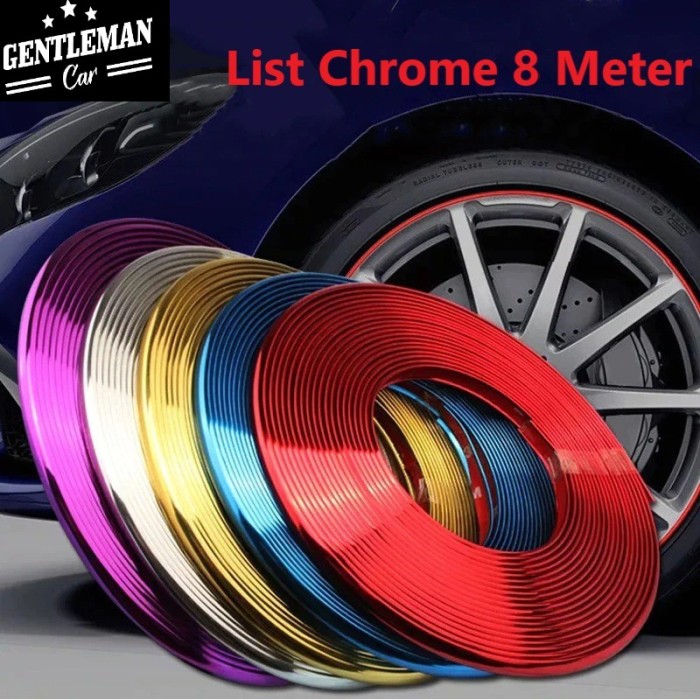 PREMIUM LIST CHROME VELG BAN MOBIL MOTOR STIKER PVC LIS RODA PELEK - BIRU