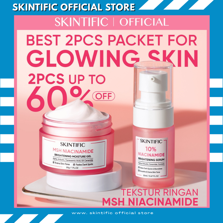 [Mall] SKINTIFIC OFFICIAL STORE 2pcs Paket Glowing MSH Niacinamide Brightening Moisturizer Gel30g Serum 20ml Niacinamide