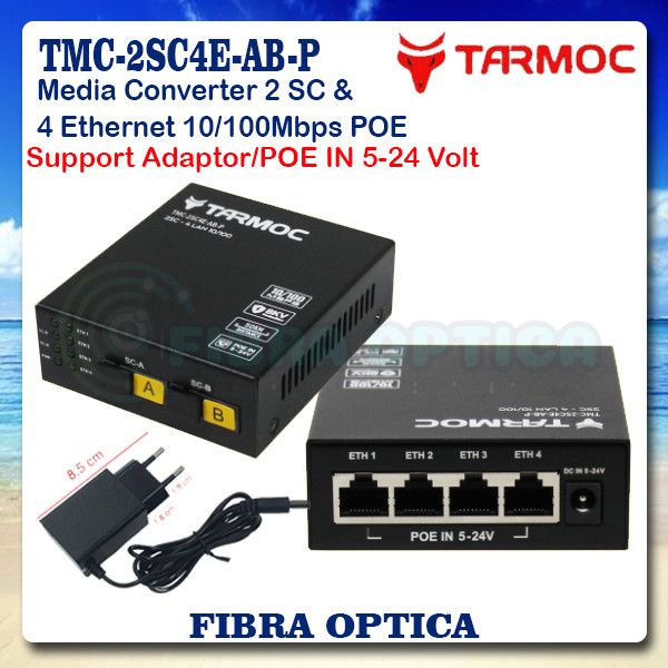 Tarmoc TMC-2SC4E-AB-P | Media Converter 2 FO 4 LAN POE IN 5-24V 10/100