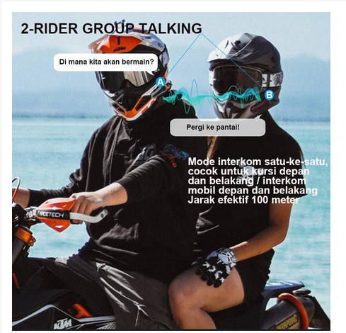 ZACRO E1 Intercom helm Bluetooth 5.0 FM Radio intercom dua arah dan Peringkat tahan air IPX6