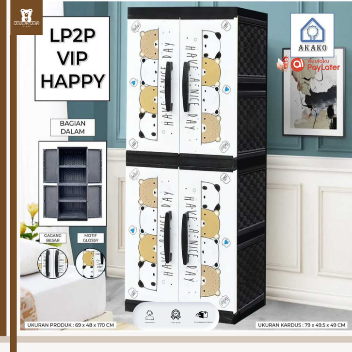 LEMARI PLASTIK BERKUALITAS 2024 LEMARI PLASTIK 4 SUSUN JUMBO AKAKO LEMARI PAKAIAN PLASTIK LEMARI VIP MOTIF PANDA LEMARI