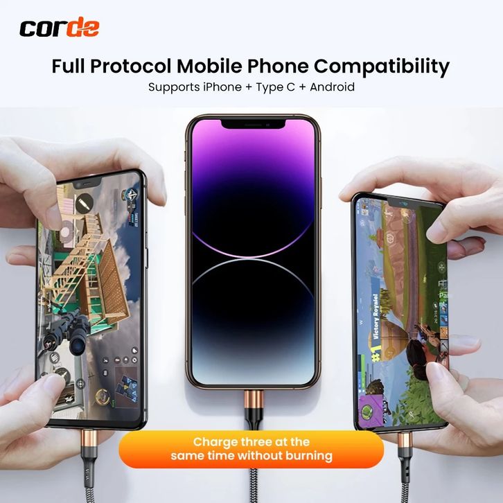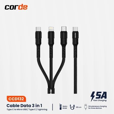 Kabel OTG CORDE Kabel Data Type C 3 in 1 5A Micro USB Lightning Type C CCD132
