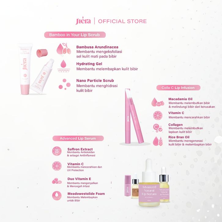 Gratis ongkir JIERA Colla C Lip Infusion (Lip Essence) + JIERA Lip Serum 10ml + JIERA Lip Scrub 10gr [Special Bundling]