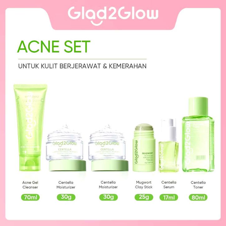 Glad2glow special bundle 6 in 1 paket skincare moisturizer serum clay