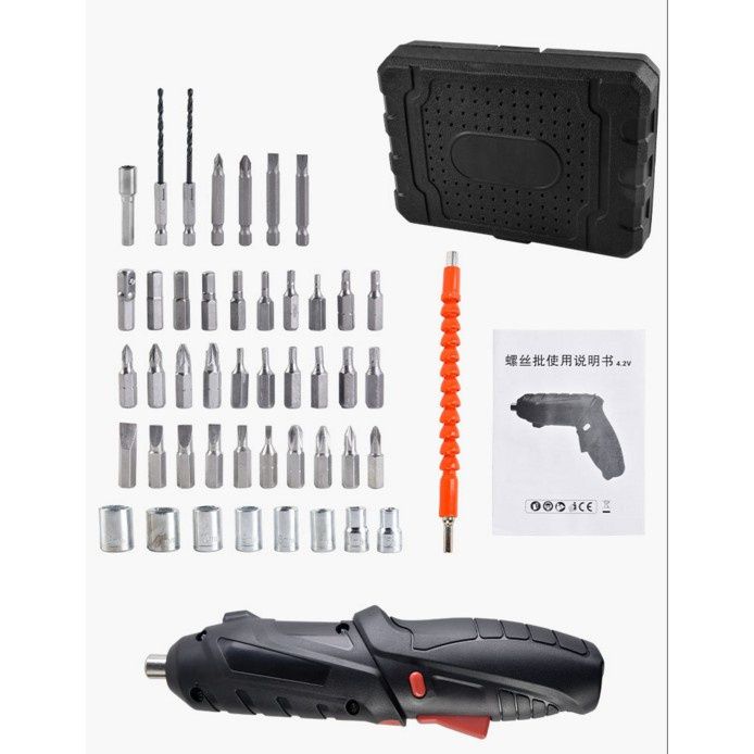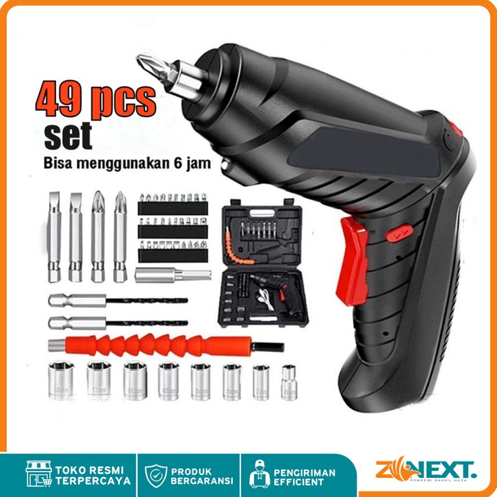 ZANEXT | Mesin bor mini pakai baterai Cordless Screwdriver 4.2 V impact cordless drill 49 pcs Set Screwdriver Baterai