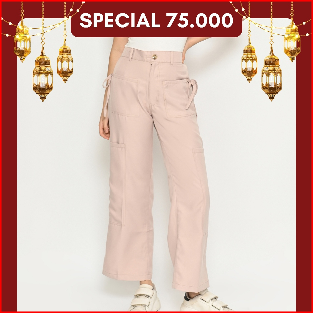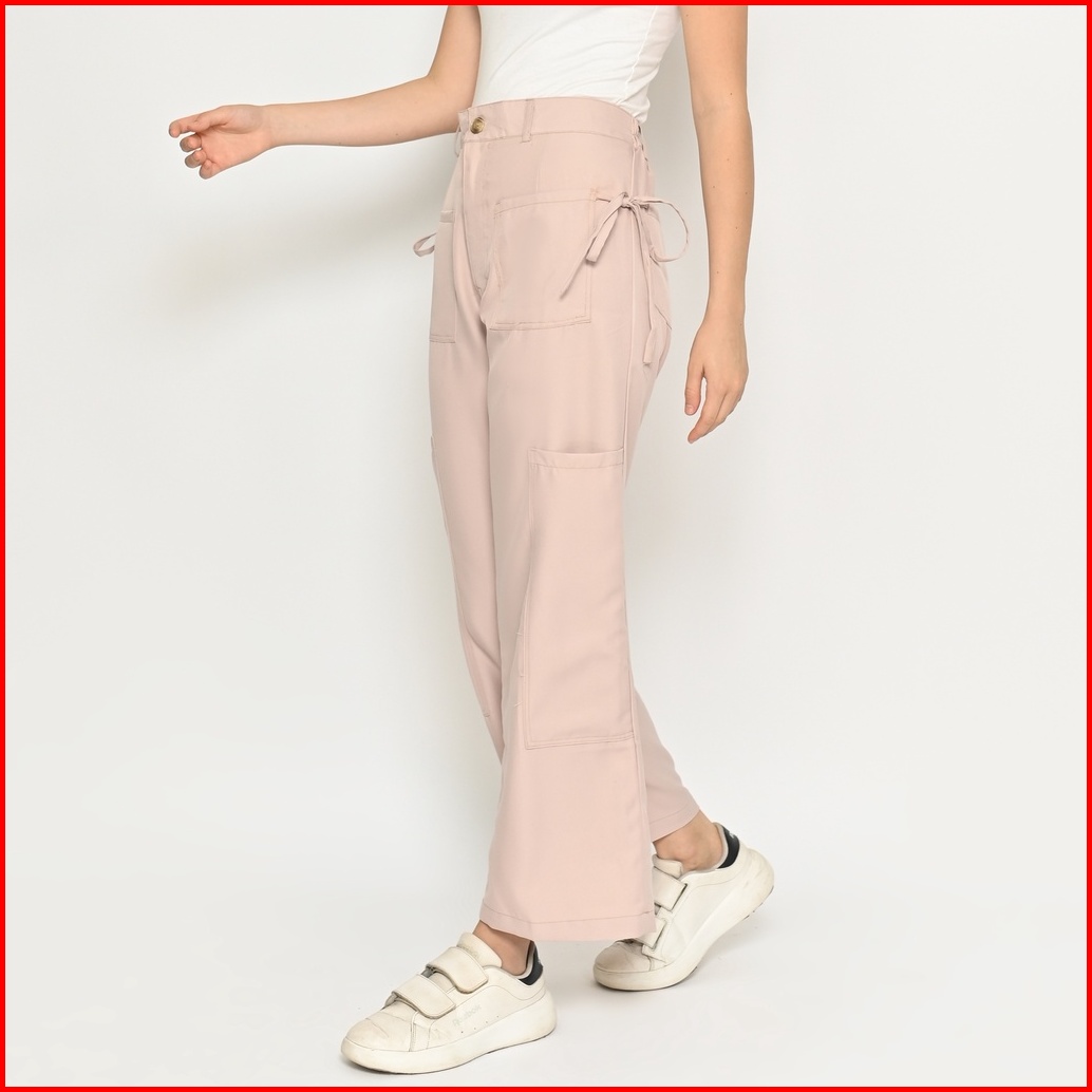 Queentin Celana Panjang Kargo Wanita 0390 Katun Napoli Polos Premium