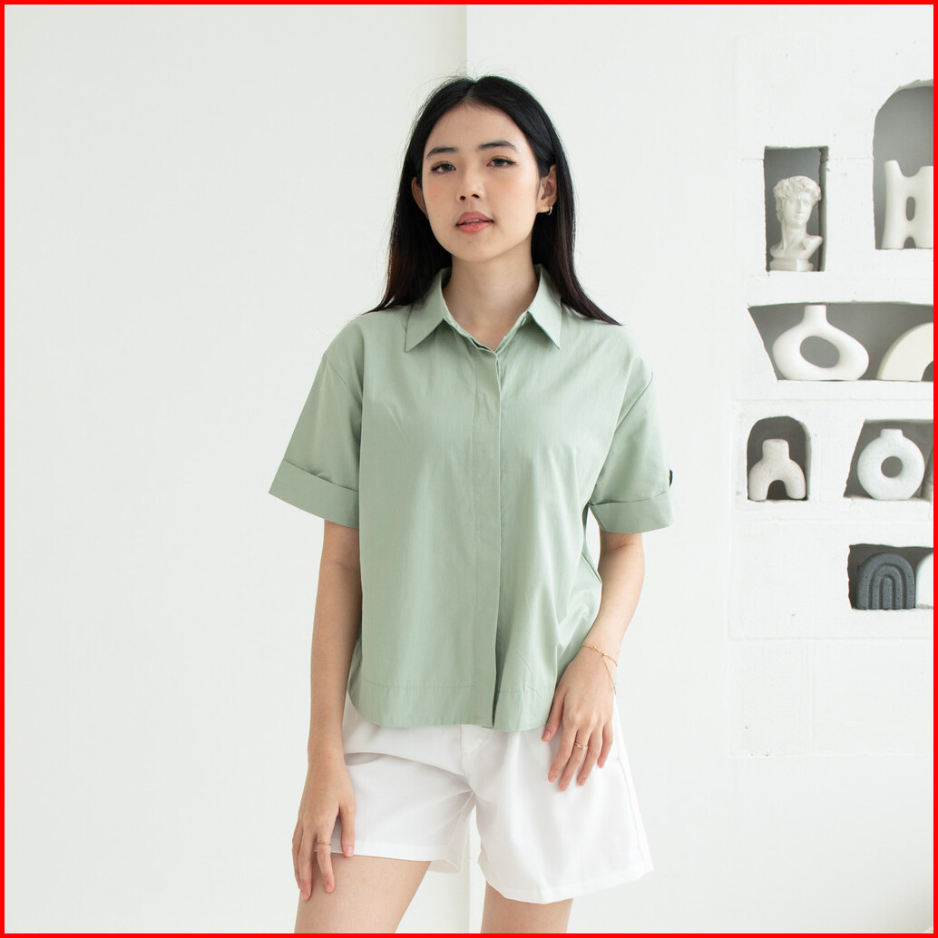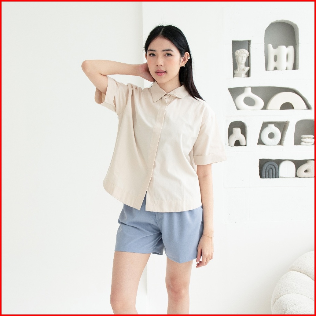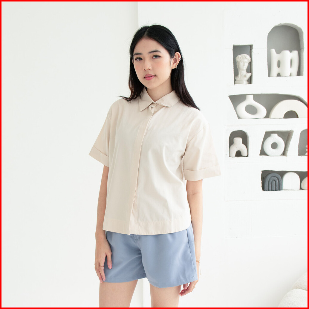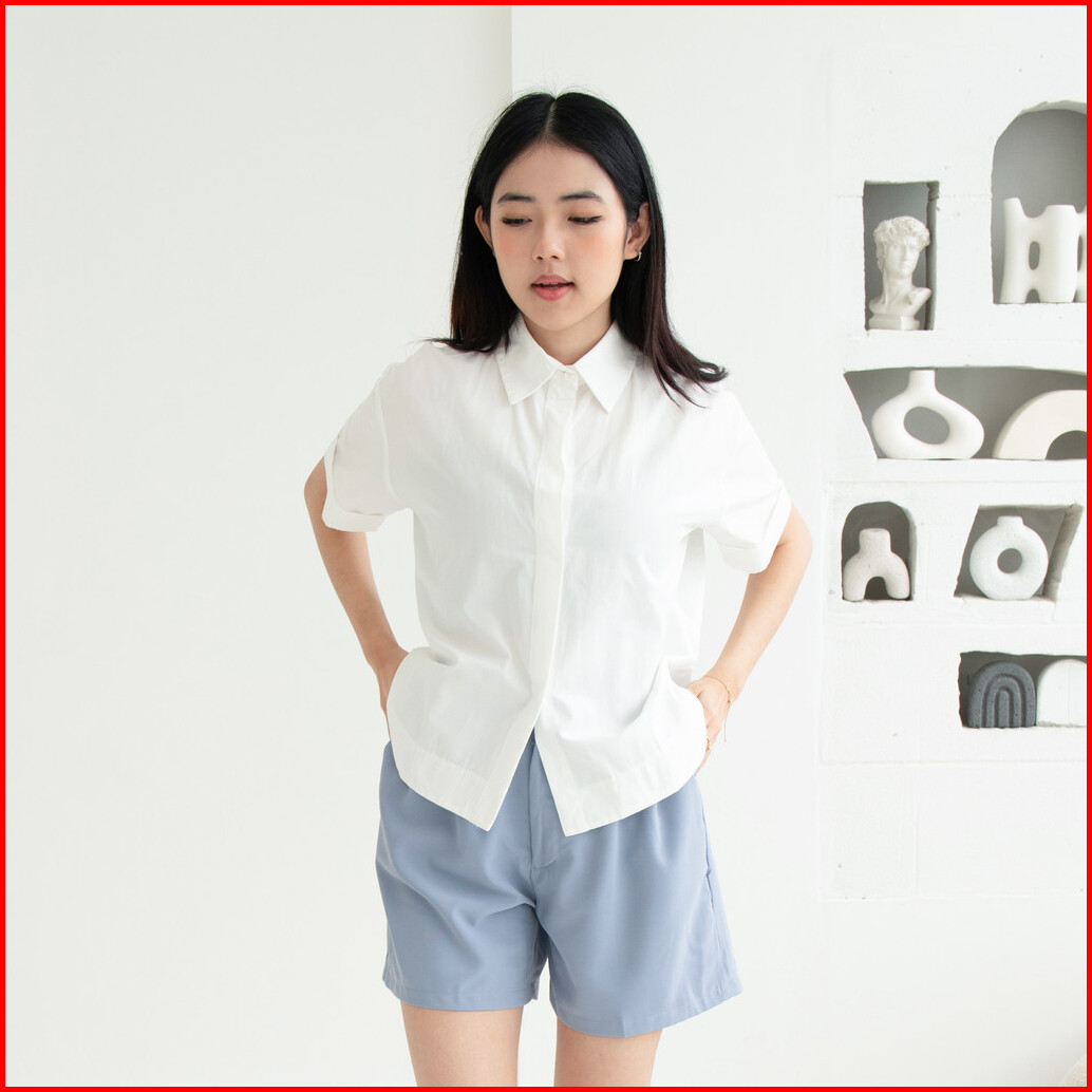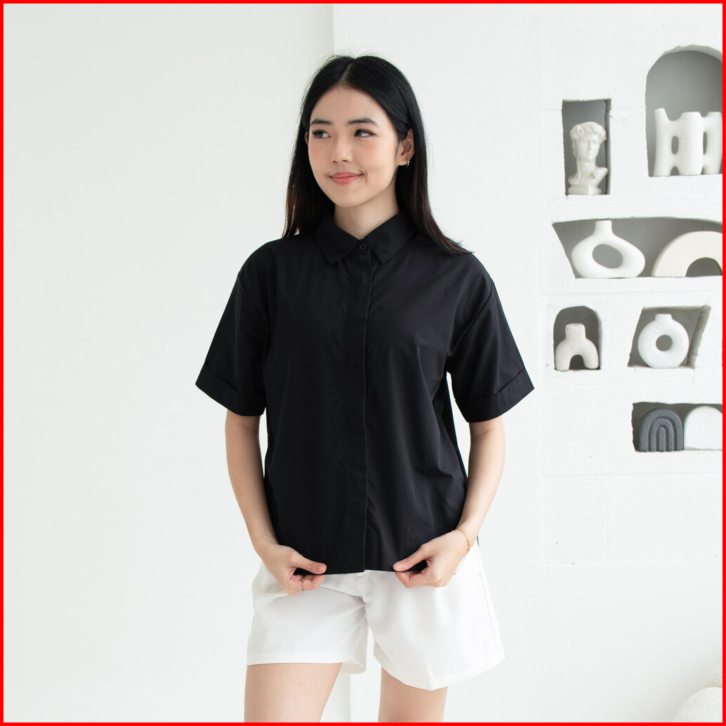 Queentin Kemeja Wanita Casual 0656 Katun Poplin Polos Lengan Pendek
