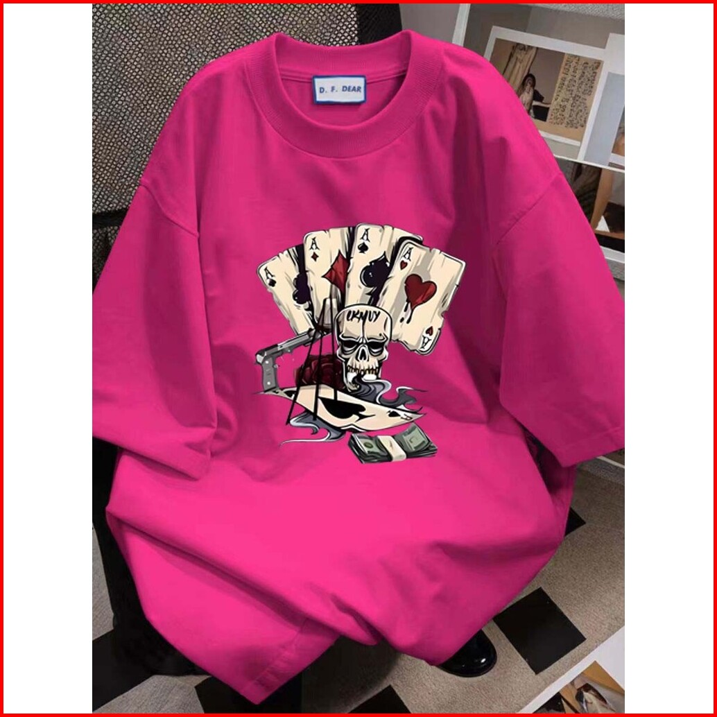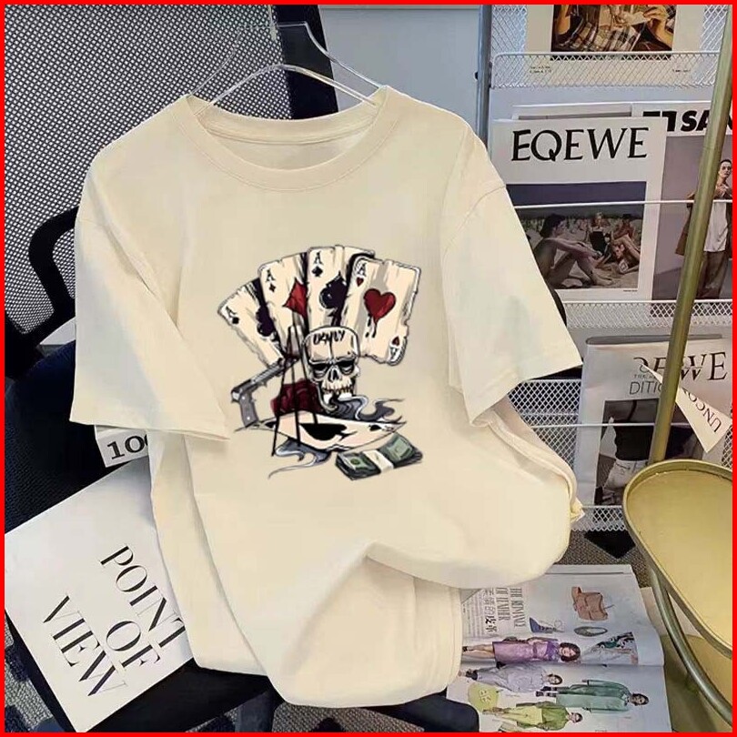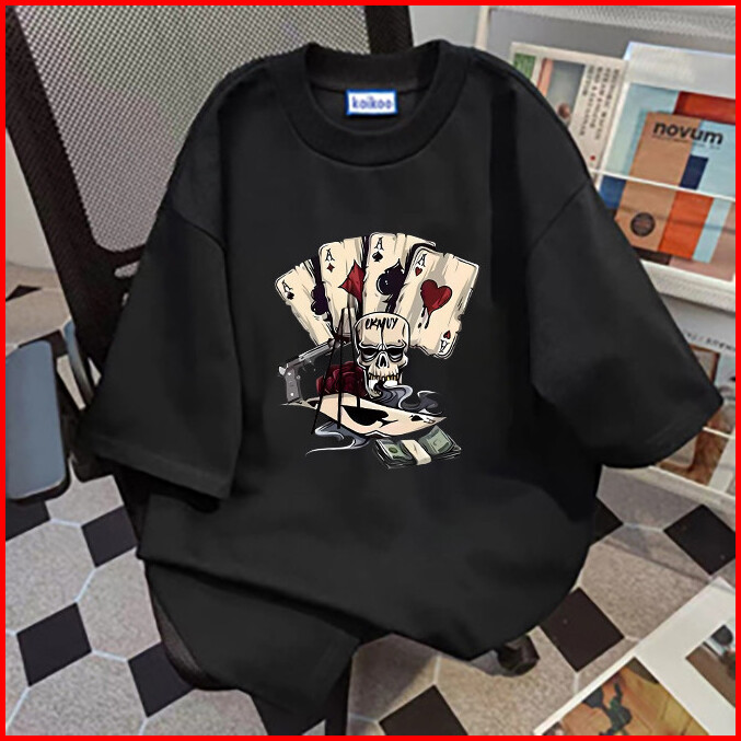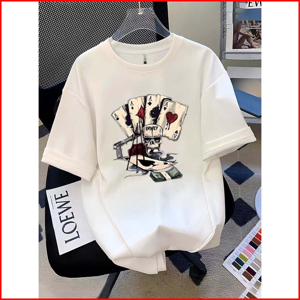 Cetakan Tengkorak Poker Retro Baju Oversize Pria Kaos Pria Terbaru 2024 Kaos Cotton Combed 30s Kaos Cowok Distro Origina
