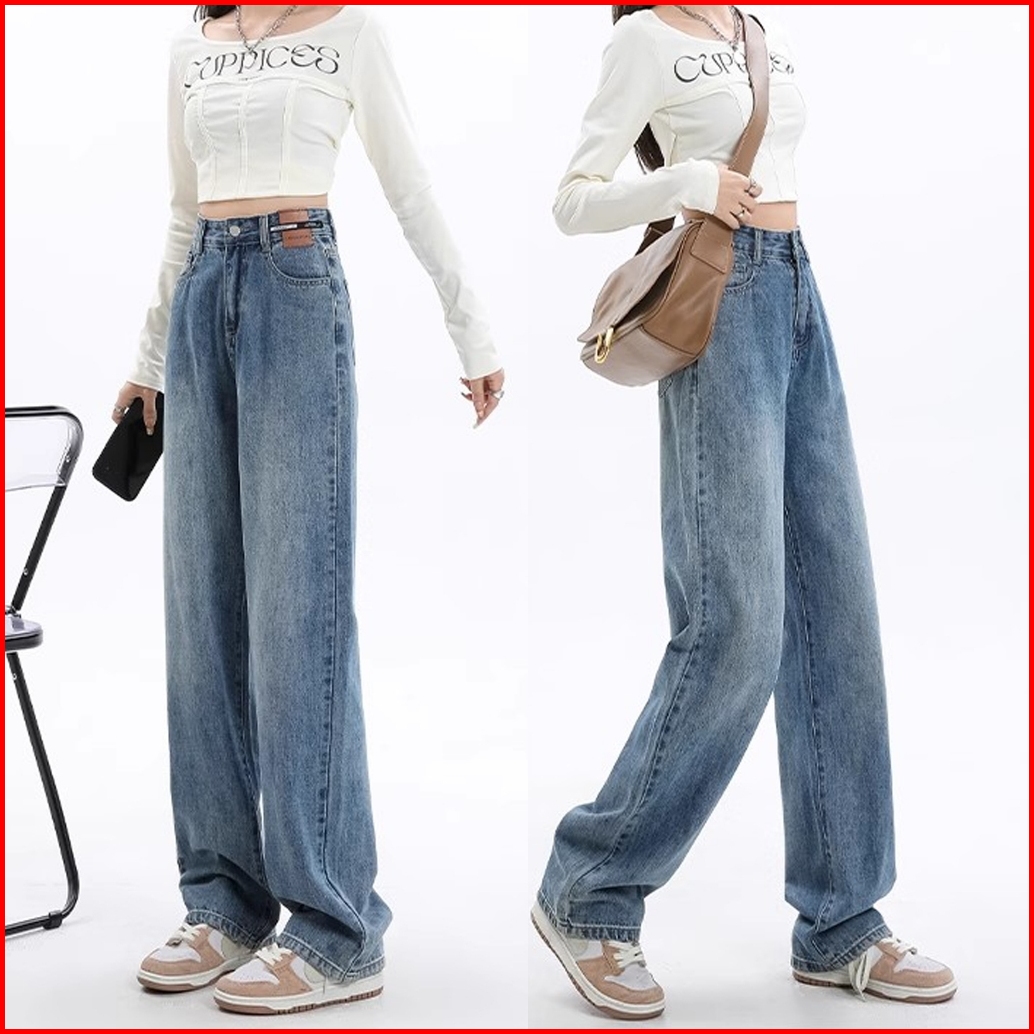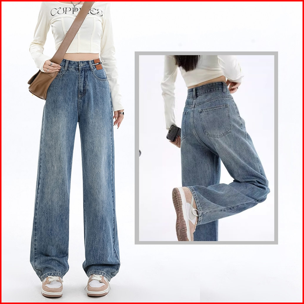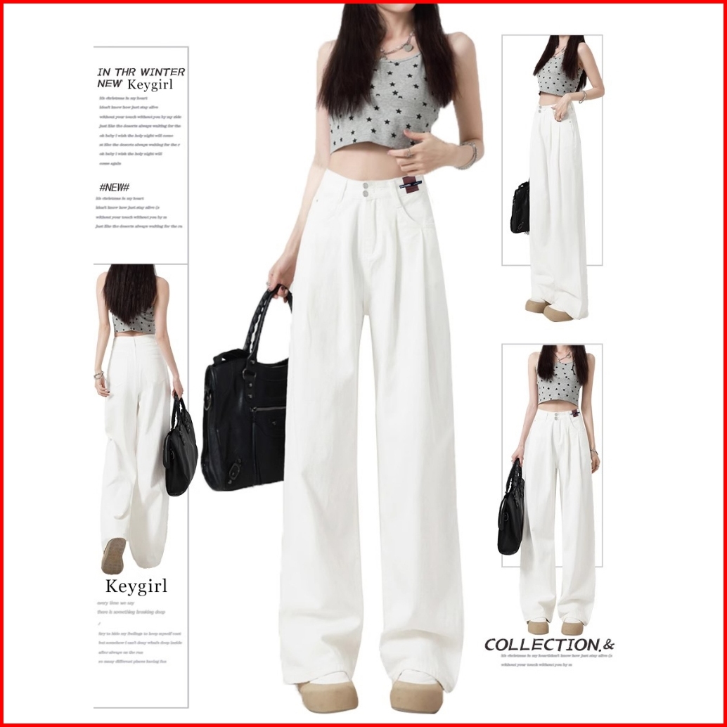 Keygirl Celana Jeans Panjang Wanita Jeans Big Size Wanita High Waist Korean Style Kekinian Kulot Loose Jeans