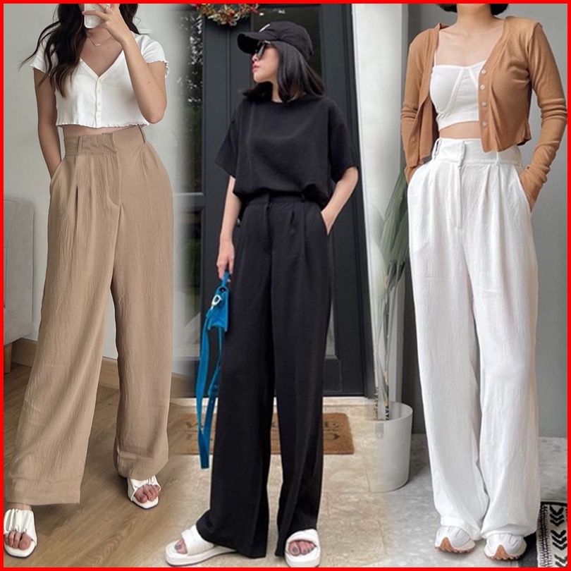 Celana Kulot Crinkle Highwaist Wanita Loose Cullote Pants Terbaru