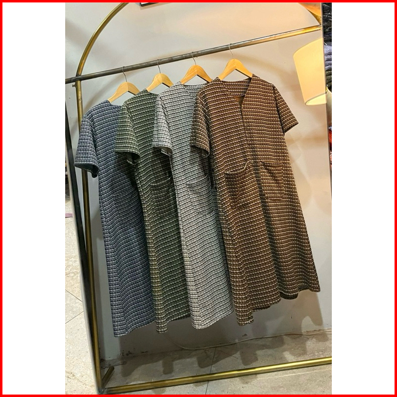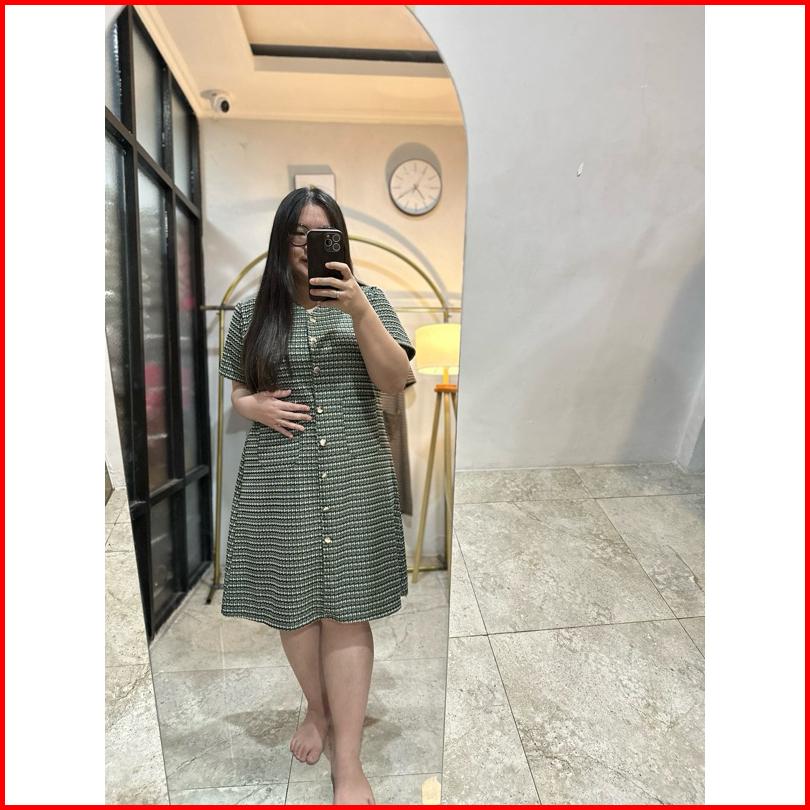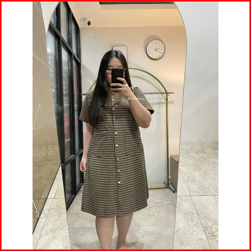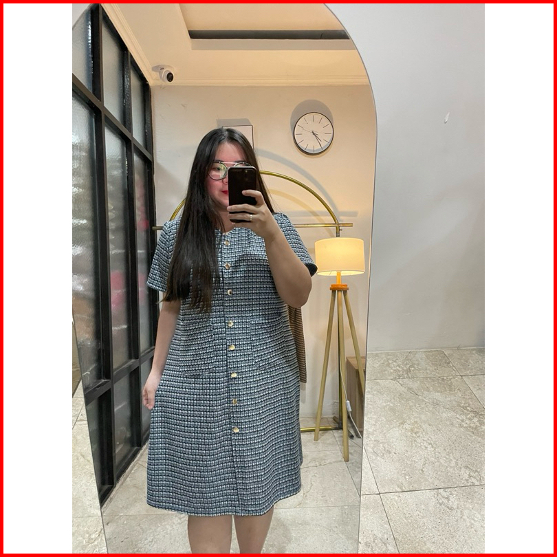 Yoo Ri Tweed Dress Kancing Busui Friendly Tweed Knit Joi Clothing -ready