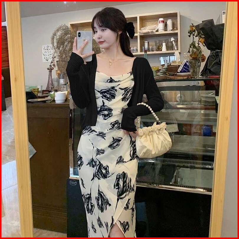 1318 Baju Dress Kondangan Sexy Wanita Midi Dress Bunga Bunga Press Body Korean Style Flowy Dress Pantai Elegan Mewah Dan