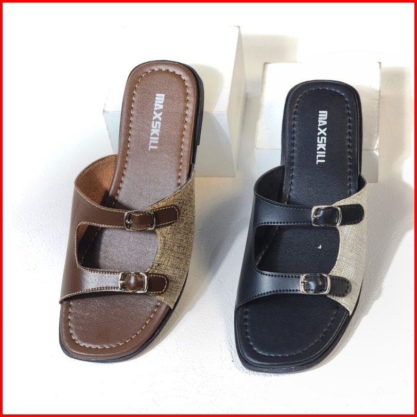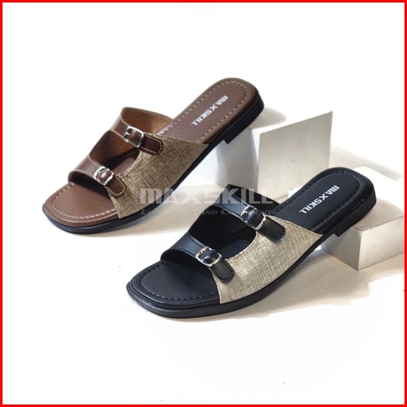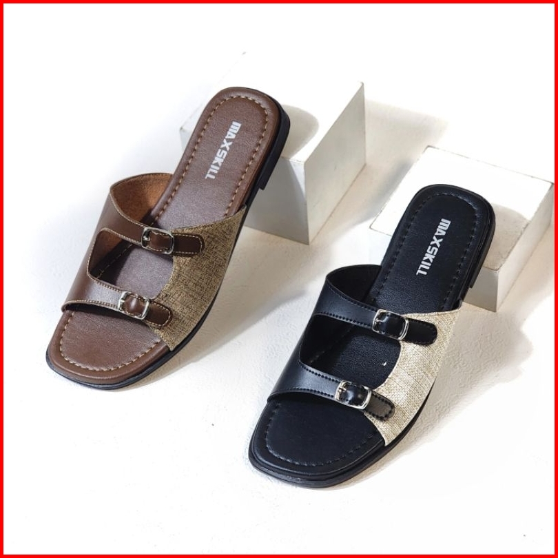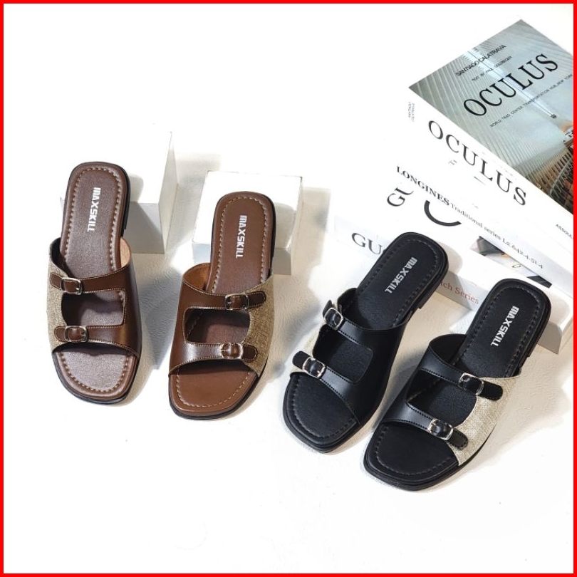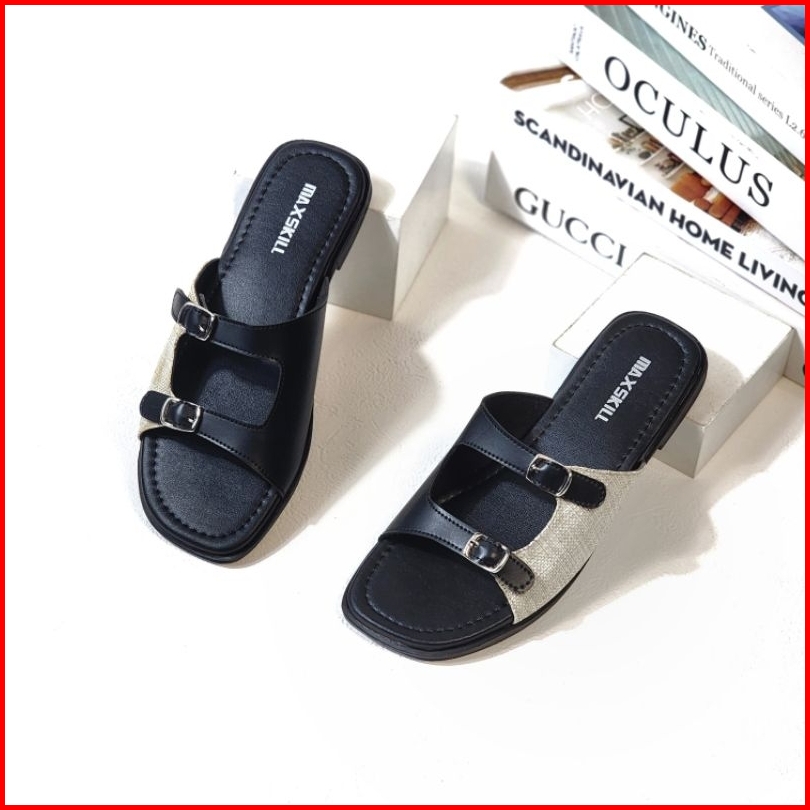 Maxskill - Keyna Sandal Teplek Slop Slip On Wanita Kekinian Flat Gesper Slim Platform Trendy 2025 Sendal Cewek
