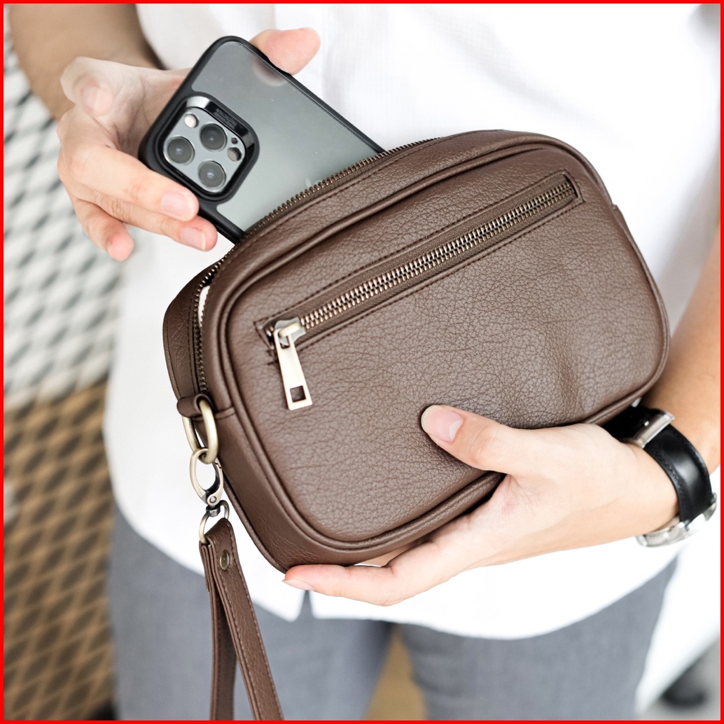 Tds Cardiff Brown Clutch Bag Handbag Tas Tangan Pouch Coklat Pria Premium Faux Leather