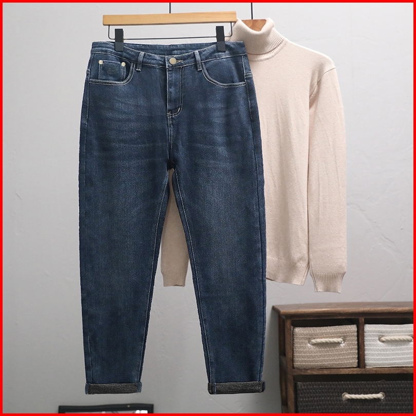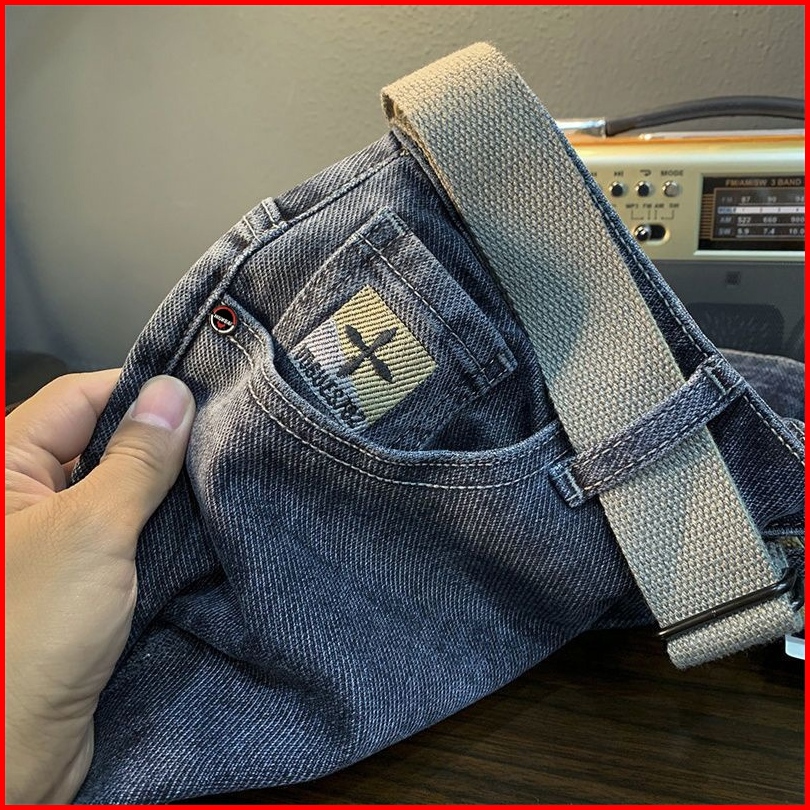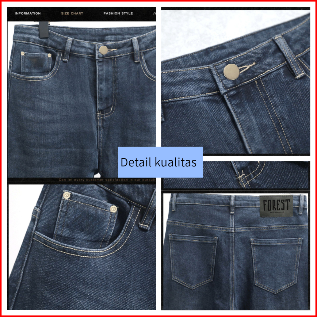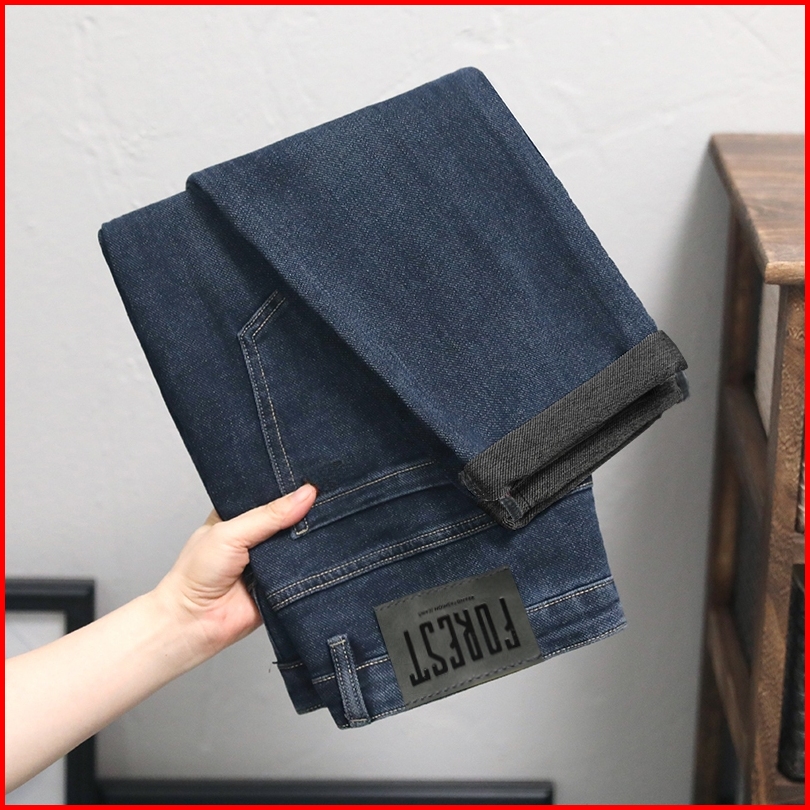 Celana Jeans Pria Slim Fit Stretch Briu Abu Standar Original Korean Style Denim Selvedge Pensil Pria Cowok Boyfriend Sof