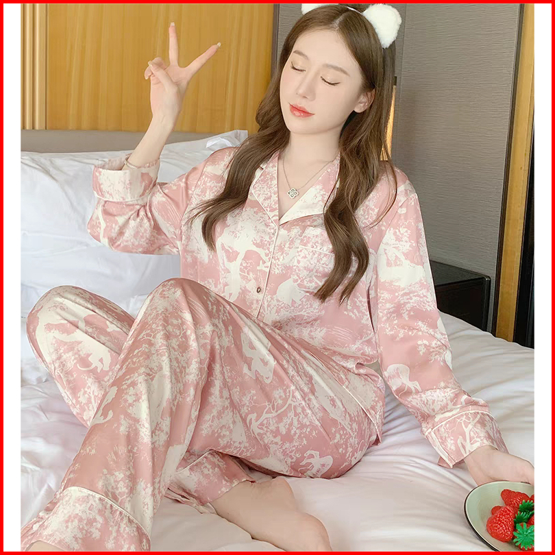 Baju Tidur Wanita Lengan Panjang Satin Premium Korea Piyama Wanita Dewasa Setelan Tie Dye Bestseller