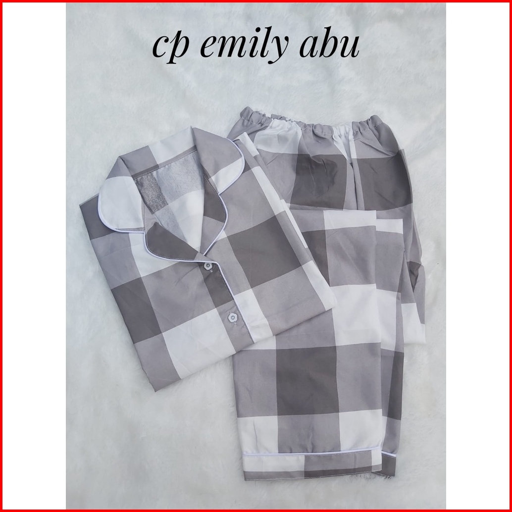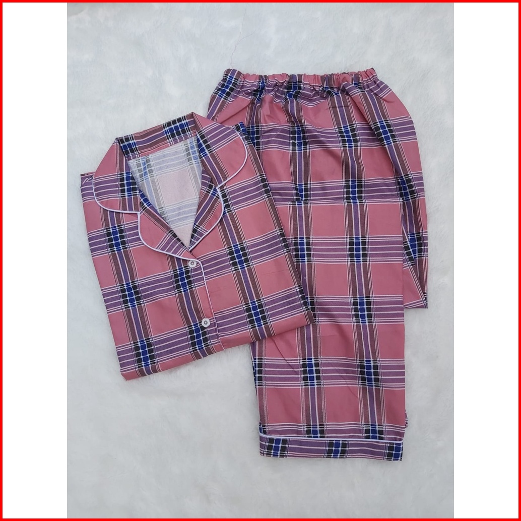 Jnv Piyama Cp Wanita Motif Kotak 02 - Baju Tidur Lengan Pendek - Katun Premium