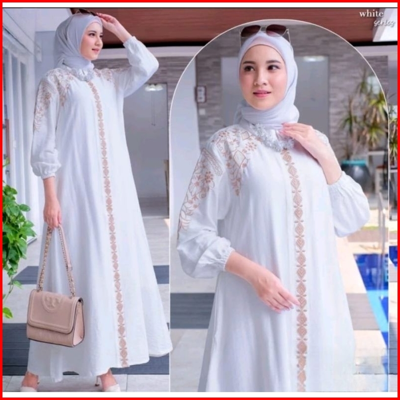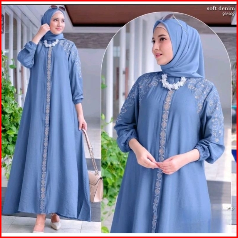 Gamis Wanita Inayah Dress Material Polo Linen Aplikasi Bordir Zipper Depan Dress Wanita Muslimah Misnadhifa Model Simpel