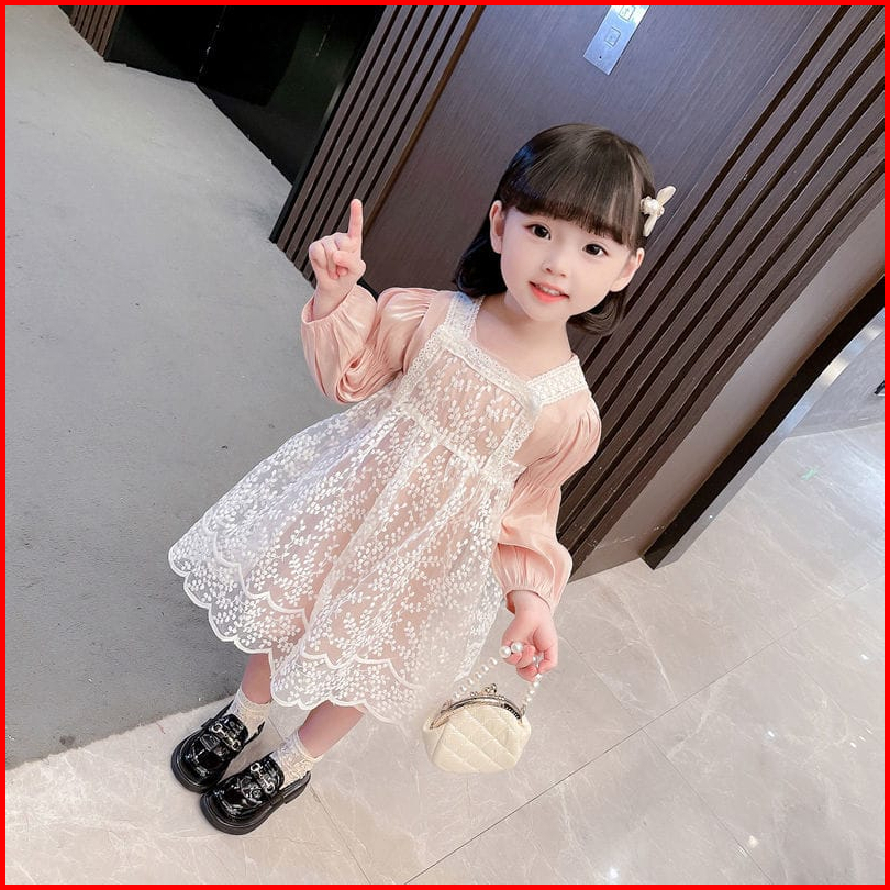 Dress Brokat Katun Anak Perempuan Lengan Panjang Dress Brokat Anak Cewe Rok Bayi Fashion Impor