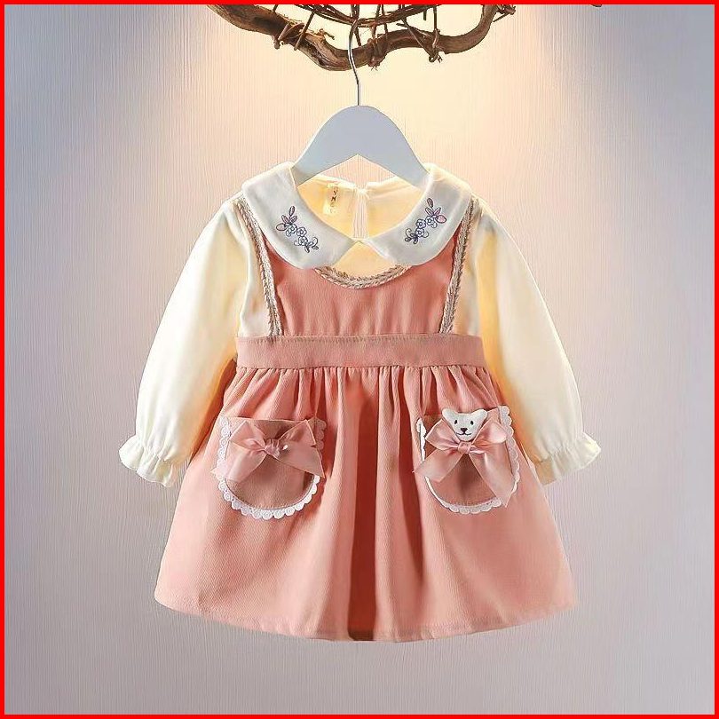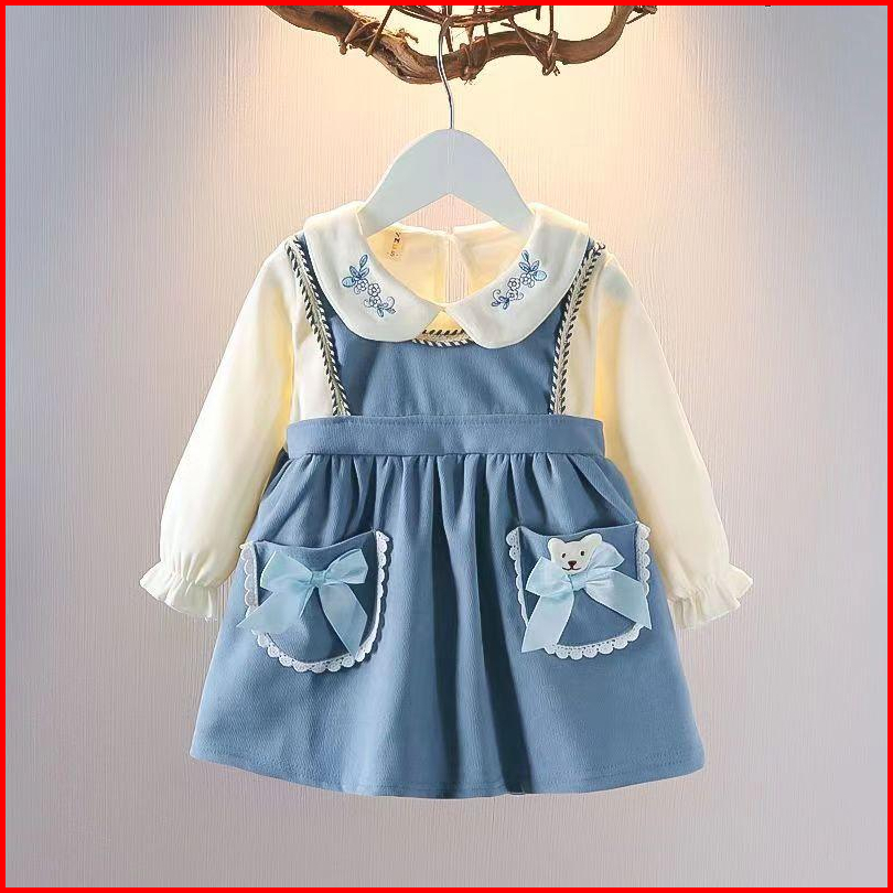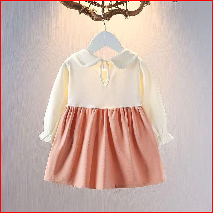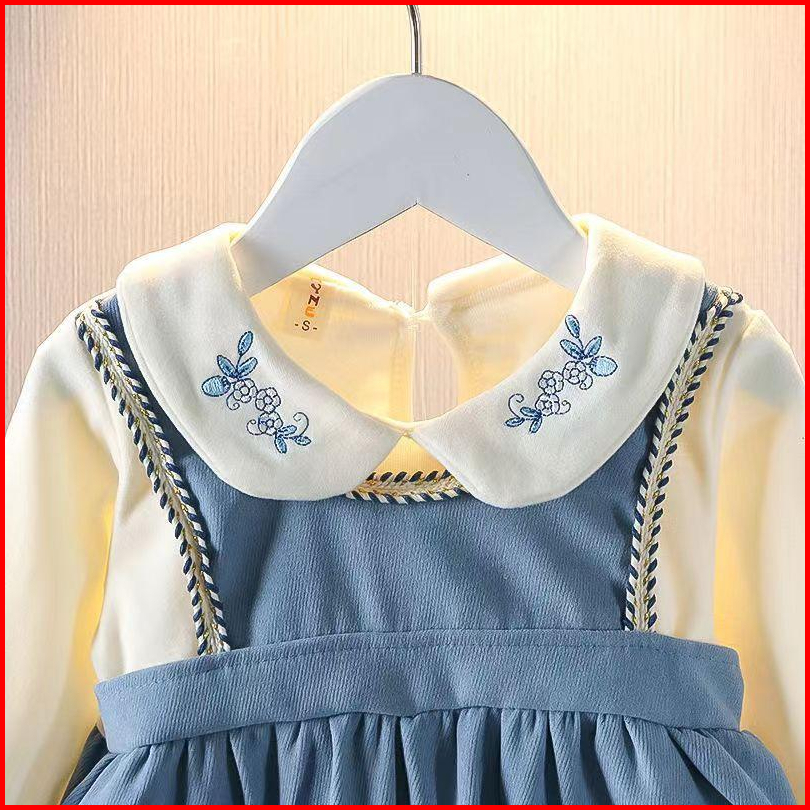 Twinkle Baju Dress Anak Perempuan Lengan Panjang Bahan Katun Polos Motif Bordir Usia 1-4 Tahun