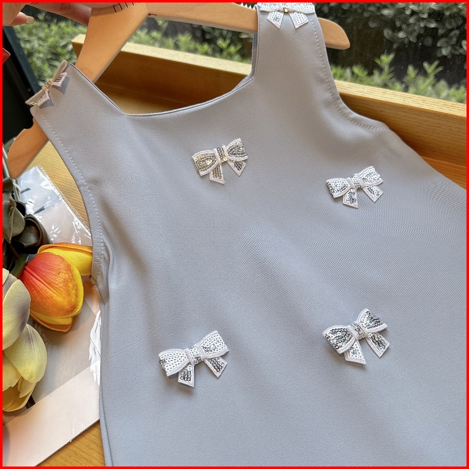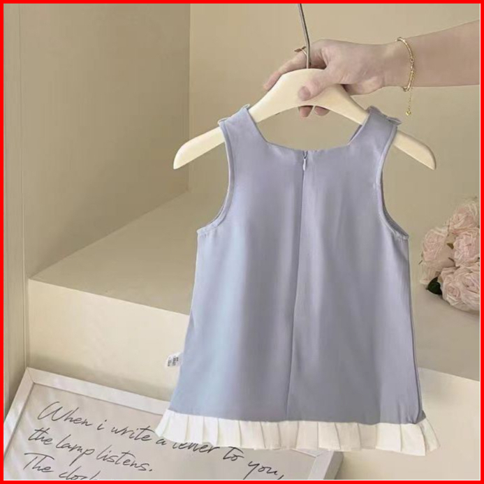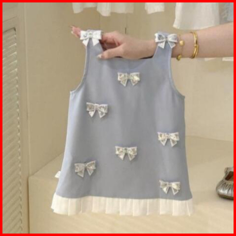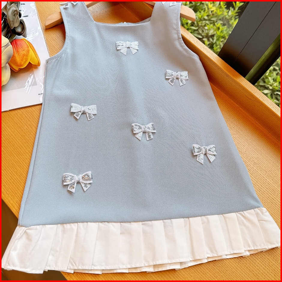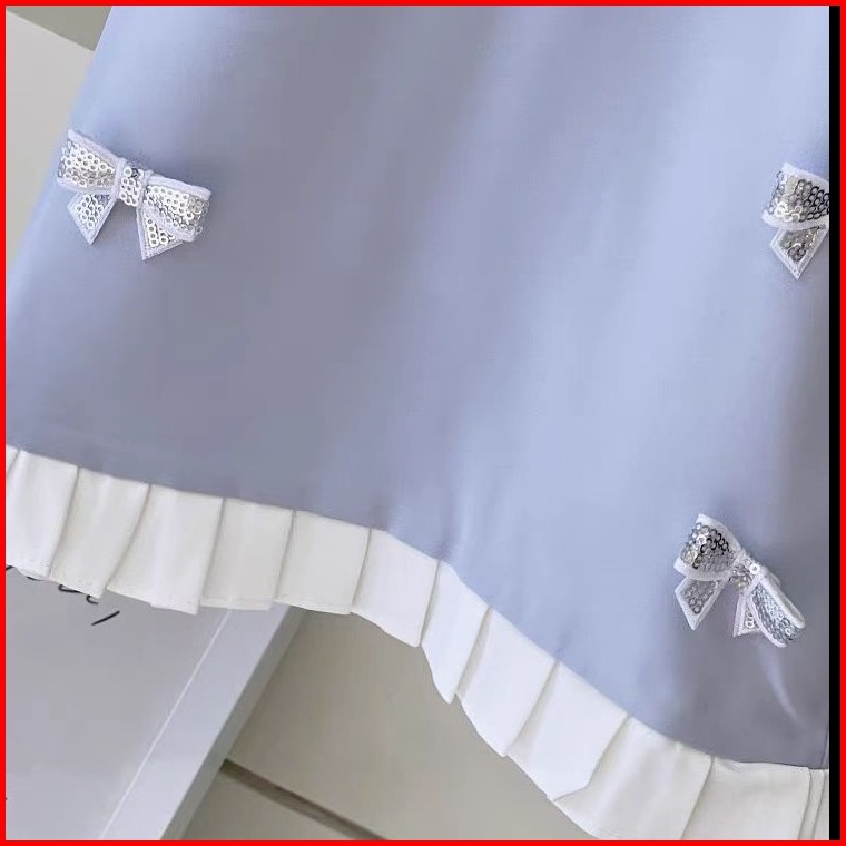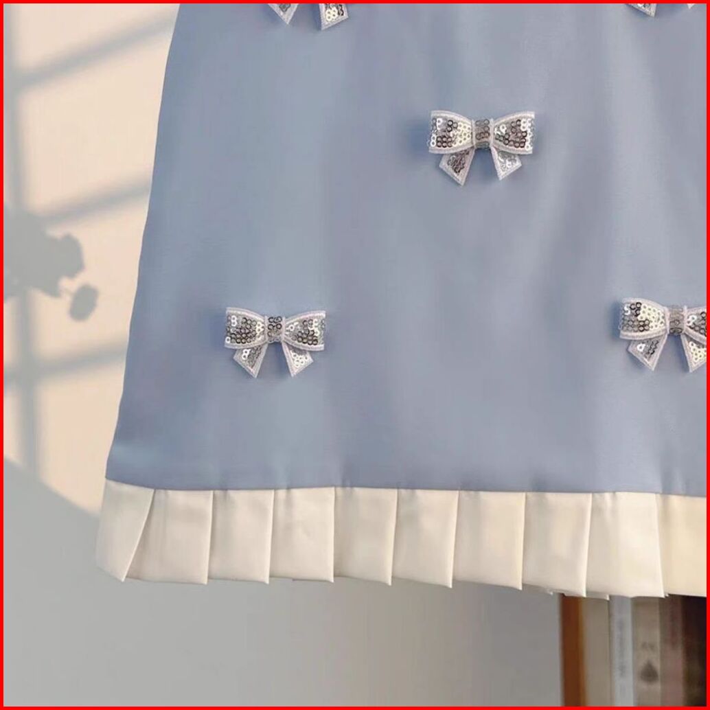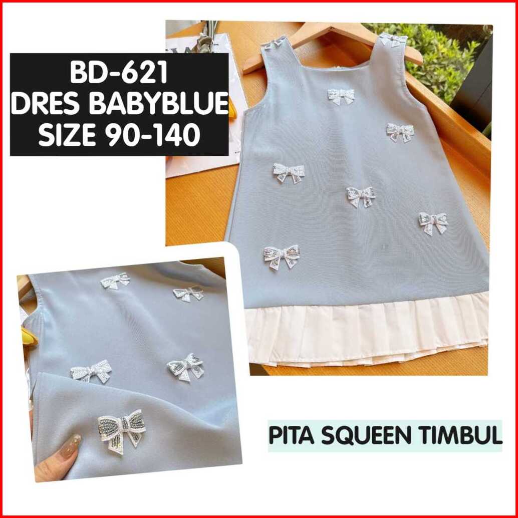 Loli-jkt Bd- 721 Dress Anak Baby Blue Pita Kecil Squeen Bahan Bagus Size 90-140