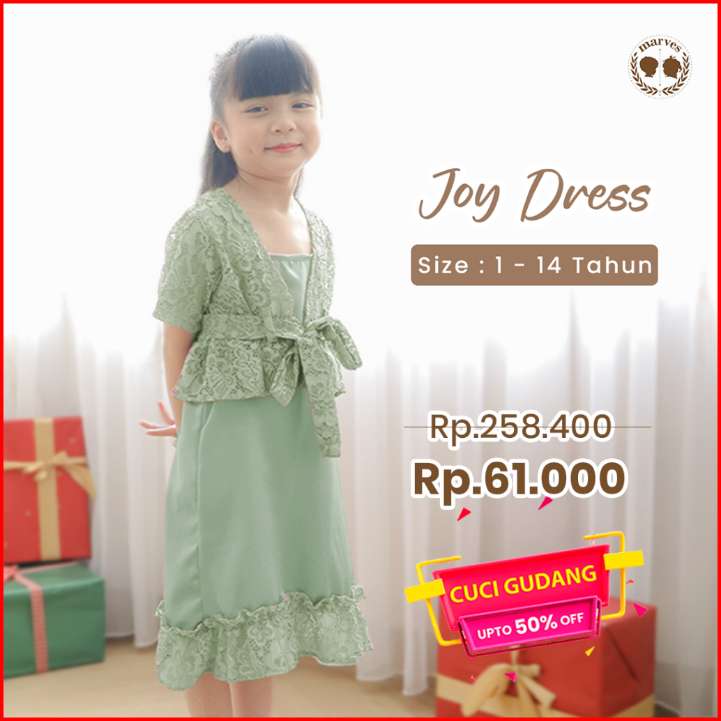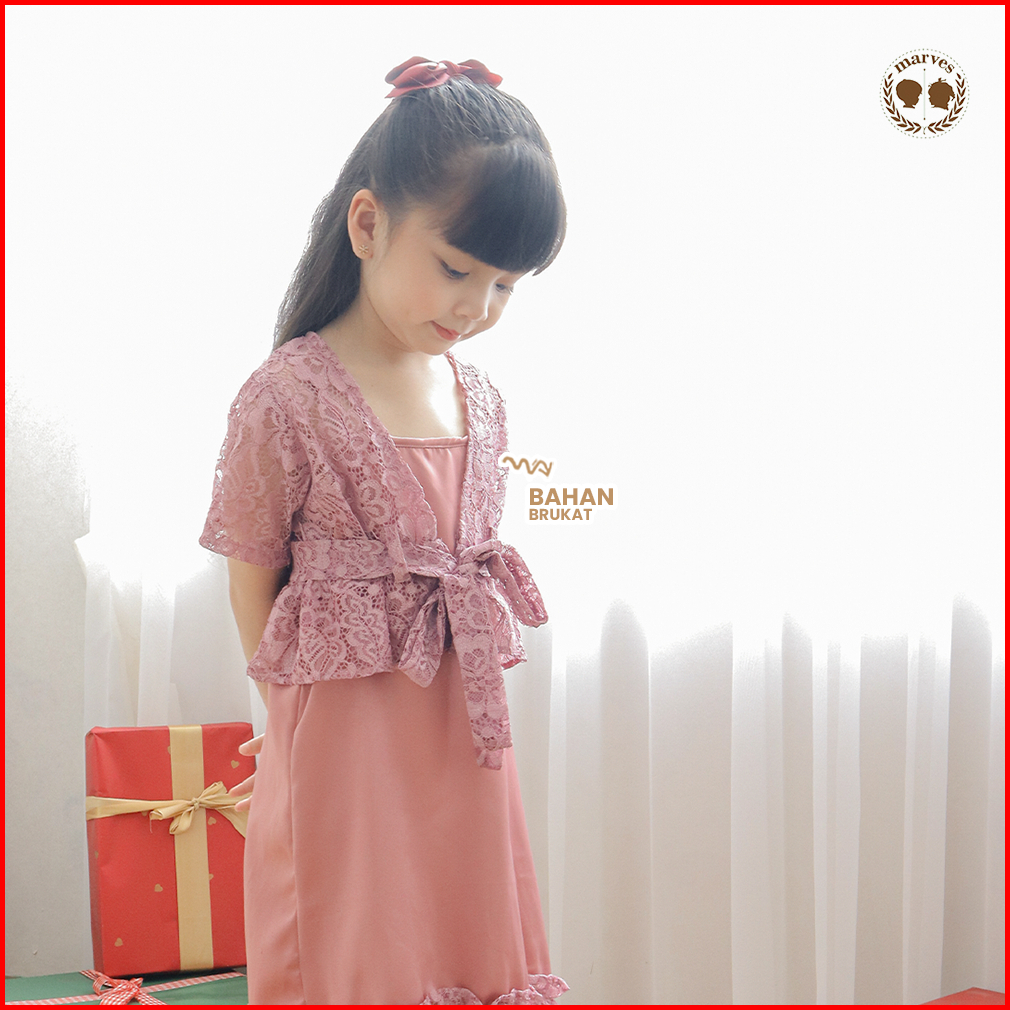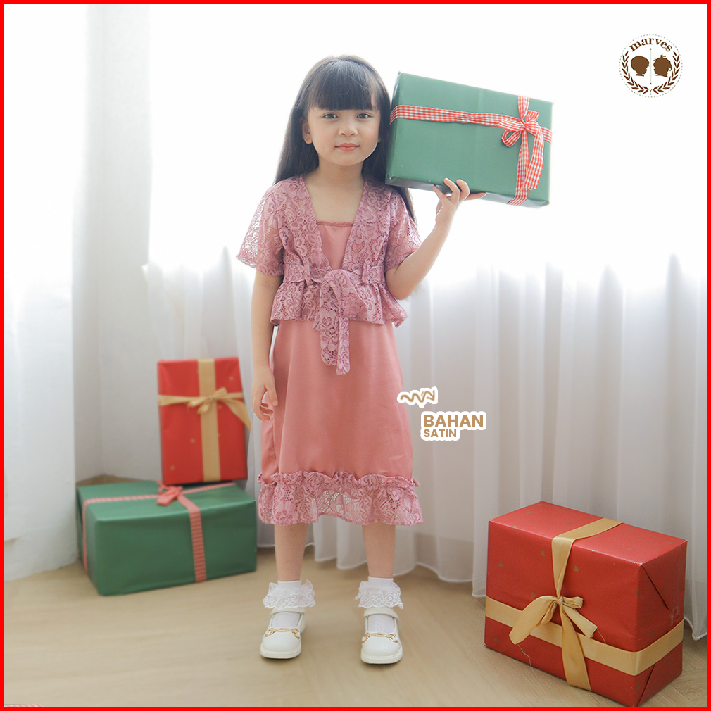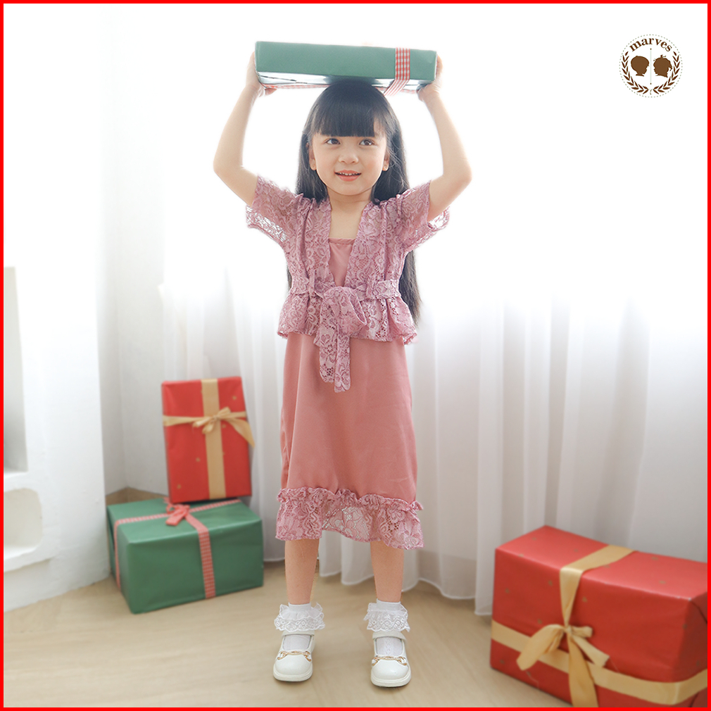 Cuci Gudang Marves Natal Collection Joy Dress Anak Perempuan Bahan Brukat Usia 1 Hingga 14 Tahun