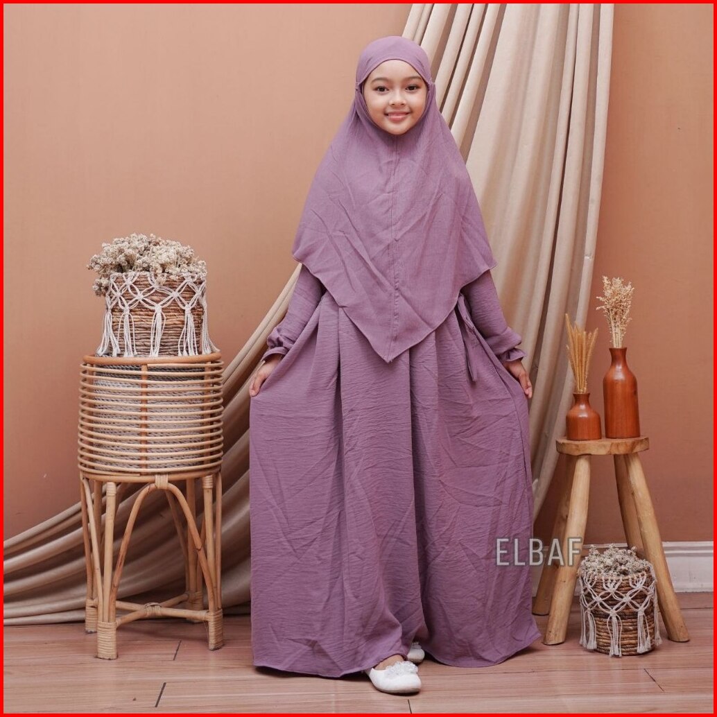 Medina Dress Baju Gamis Anak Perempuan Set Khimar Syar I Lebaran Terbaru 2024 Hitam Putih Muslim